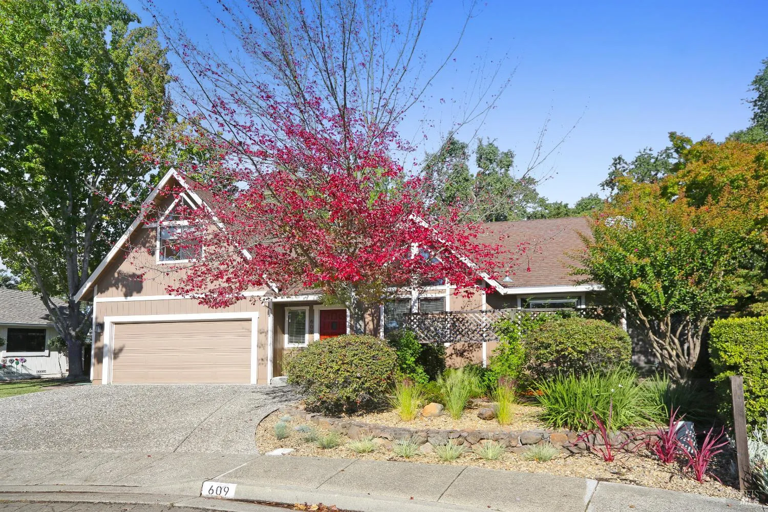 Nestled at the end of a quiet court, this beautiful home offers over 2,000 square feet of comfortable, updated living space on a large private lot in a convenient El Verano location just minutes from shopping, schools, and all that Sonoma Valley has to offer. Step outside to your backyard oasis, where lush landscaping and a sparkling pool create the perfect setting for relaxation and entertaining. A charming pergola and generous patio area invite year-round outdoor living in complete privacy. The recently updated kitchen features custom cabinets, quartz countertops, a hammered copper farmhouse sink, KitchenAid appliances, and encaustic tile flooring. The first floor showcases hardwood floors and a tongue-and-groove cathedral wood ceiling that adds warmth and character. The remodeled lower-level primary suite offers a luxurious retreat with a freestanding soaking tub, shower, and custom tile work. A bonus room on the main floor provides flexibility for a home office or optional fourth bedroom. Upstairs, are two spacious bedrooms with LVP flooring, and a remodeled bathroom with elegant tile finishes. With its blend of style, comfort, and thoughtful upgrades, this inviting home perfectly balances every functionality with resort-like living ready to enjoy from the moment you arrive.