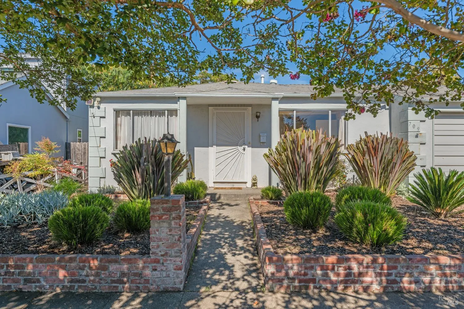 This charming 3-bedroom, 2-bath, single-level home with its incredible backyard, spacious 5,998 sq ft lot, and central location is a fantastic value! This home offers original hardwood floors, plenty of sunlight, and a cozy wood-burning stove that add warmth and character. The primary suite has its own bathroom and opens to spacious backyard featuring a large concrete patio and deck, multiple mature fruit trees providing shade (plus apples, nectarines, lemons, and limes), a raised garden bed, a storage shed, and a small outbuilding suitable for hobby or garden use. A spacious, attached 2-car garage provides ample parking, storage, and built-in workshop space. An automatic irrigation watering system (installed 2021) keeps the fully landscaped front yard low-maintenance and water-efficient. Perfectly situated near Santa Rosa’s Historic Railroad Square, restaurants, and Hwy 12 & 101, this home is ready for its next owner to make it shine even brighter.