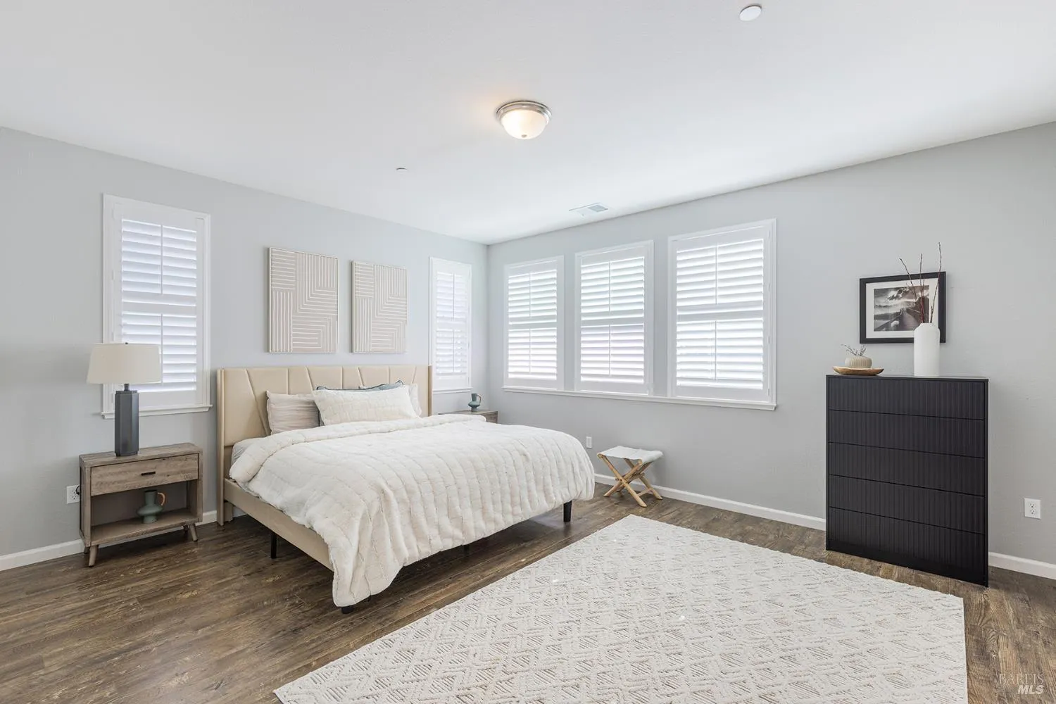 Built in 2018, this spacious 4-bedroom, 2.5-bath home in Rohnert Park’s desirable W Section offers approximately 2,494 sq. ft. of modern living space. Located in Willowglen, one of the city’s newest and most sought-after neighborhoods. You’ll enjoy being just minutes from local parks, shopping, and schools. The main level features an open concept kitchen with stainless steel appliances, a large island, and stunning calacatta quartz countertops that flow into the bright dining and living areas. A versatile downstairs office or den and a half bath provide extra flexibility for work or guests. Upstairs, you’ll find four generous bedrooms, including a primary suite with a walk-in closet and dual-sink vanity, plus a convenient laundry room and loft space. Additional highlights include upgraded cabinetry and flooring, custom paint, stylish lighting, plantation shutters, and high ceilings throughout. The low-maintenance yard features a concrete patio ideal for entertaining, a vegetable garden setup, and an attached two car garage. Contemporary stucco and stone exterior complete this move in ready home that truly has it all!