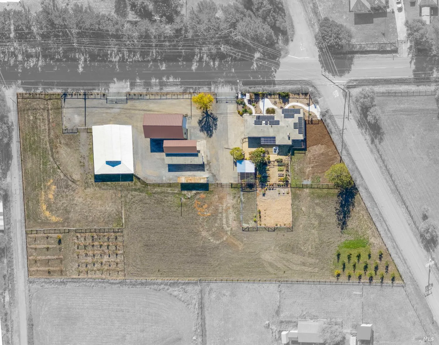 This exceptional 2,153 sq ft single level home sits on 3.4 fully fenced acres, offering the perfect blend of country comfort and modern functionality. The property includes multiple outbuildings, including a 1,500 sq ft shop, with two inline 14′W 12′H roll-up doors and one 10′W 12′H roll-up door. The property also includes a 900 sq ft barn, with two horse stalls, a large carport, and additional structures for animals and storage. The 4 bedroom/2 bath residence offers a versatile layout with a separate-entry suite and an additional office with exterior access, ideal for guests, extended family, or a home business. The spacious living room showcases large wood-framed windows and a wood-burning fireplace with insert. The kitchen features solid wood cabinetry, a built-in hutch, and a gas stove, while the adjacent dining area opens to the backyard through glass double doors. Additional highlights include recessed lighting, dual-pane windows, and a fully paid solar system that generates enough power for both the home and the shop. The grounds feature several fenced enclosures, raised garden beds, and an agricultural well. Located just minutes from downtown Cotati and Penngrove, with easy access to Highway 101, Sonoma State University, and nearby amenities.