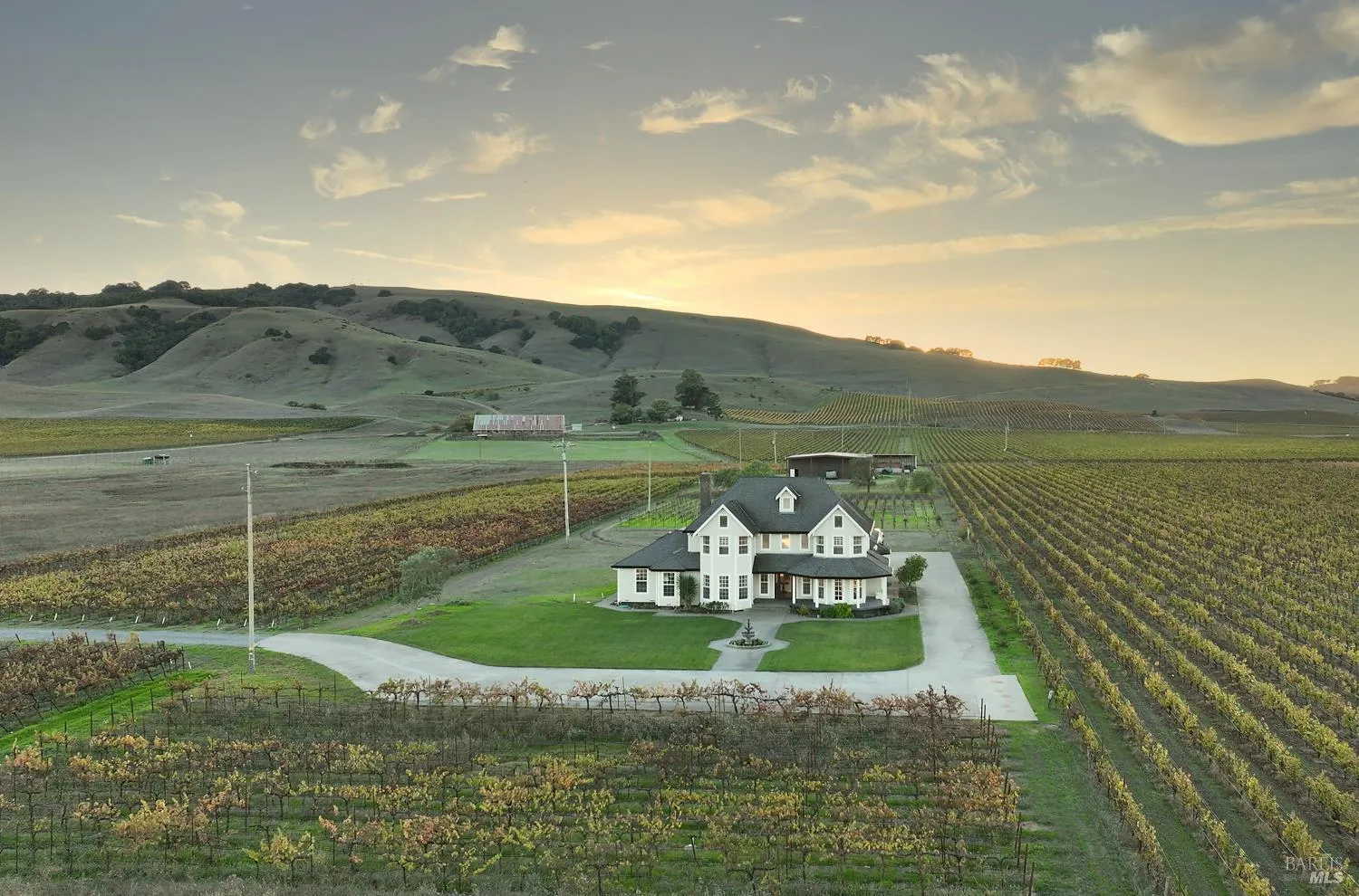 Vineyard and pastoral views from this 4 bedroom, 4 full bath Victorian style home on 10 premium acres in the heart of the Sonoma Carneros wine district! With seven acres planted to Pinot Noir, plus a 3,600+ square foot, fully insulated, entrepreneur’s barn inclusive of two offices, its own full bath with washer dryer hookups, and loft space overhead. Additionally, the property boasts an oversized (1,400 sf) garage formerly used as office space and a recreation room, featuring a newly finished floor, storage lockers, and overhead attic storage. This is a dream property for the creative thinker who wants to blend family life with an abundance of work-from-home areas! Loads of versatile space, whether to accommodate horses, a pool, or a car collection, this property is a must-see! Current County use permit allows for 5,000 case wine production. Make yourself famous, or just enjoy the Sonoma good life on this hard-to-find 10 acre parcel!