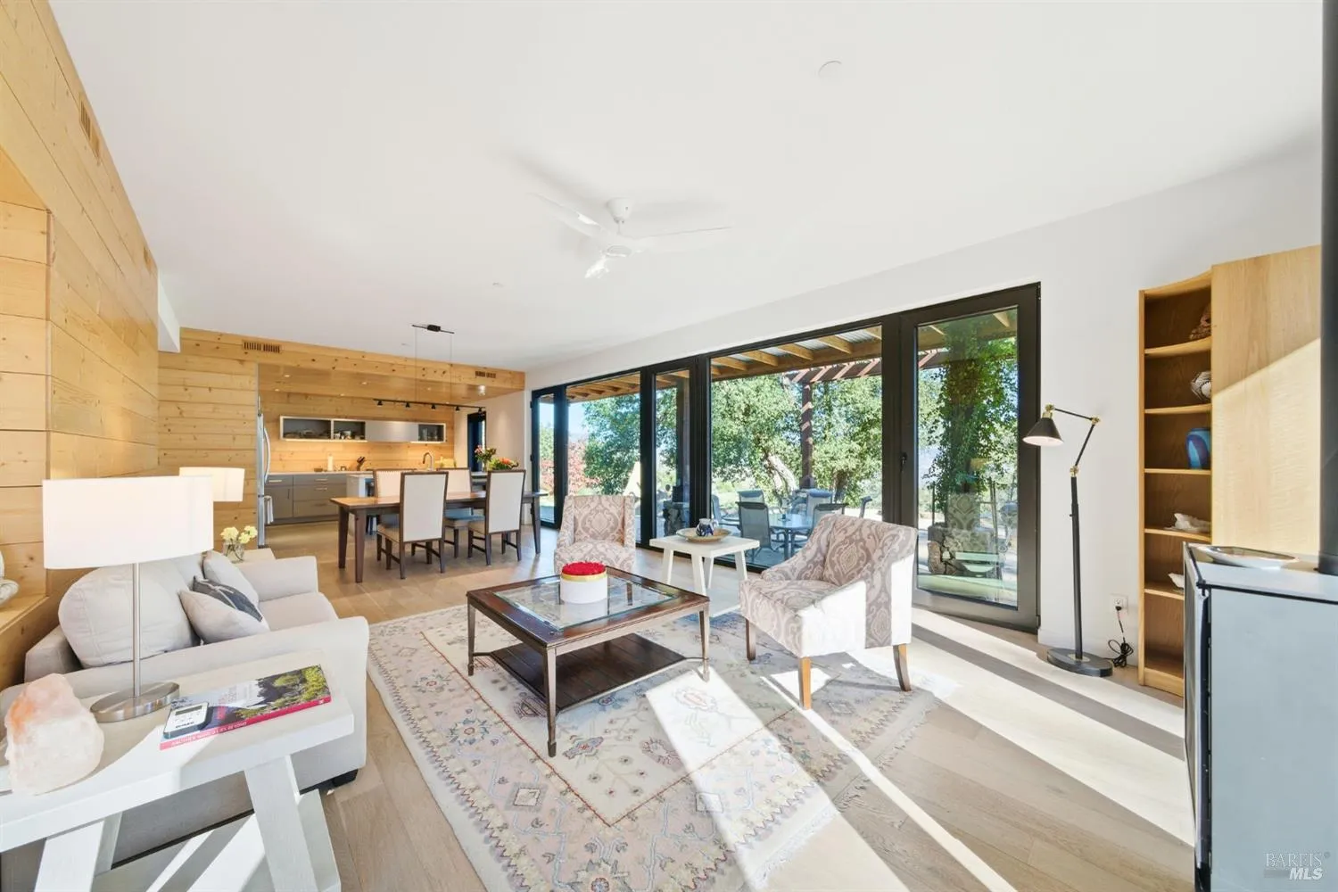 Nestled on nearly 6 acres at the end of a quiet cul-de-sac, this exceptional modern home on one level offers a rare blend of design, comfort, and sustainabilityjust a short drive to Bennett Valley shops, downtown Santa Rosa amenities, top-rated schools, and world-class Sonoma wineries. Built in 2021, the 3BD/3BA residence showcases clean architectural lines, weathering steel (Cor-Ten) exterior, western white pine accents, white oak hardwood flooring, and Daltile tiles that add subtle sophistication throughout. Expansive walls of glass frame stunning views of rolling hills, mountains, and mature trees. The open-concept great room with a sleek gas fireplace flows into a designer kitchen featuring quartz countertops, premium finishes, a double oven, and outdoor dining under a custom pergola. Custom blinds in the bedrooms offer privacy and comfort, while a separate study provides the ideal space for work or creativity. Solar power, a standby generator, native landscaping, and a shipping container for storage complete this peaceful, stylish retreat where modern living meets sustainability in the heart of Bennett Valley.