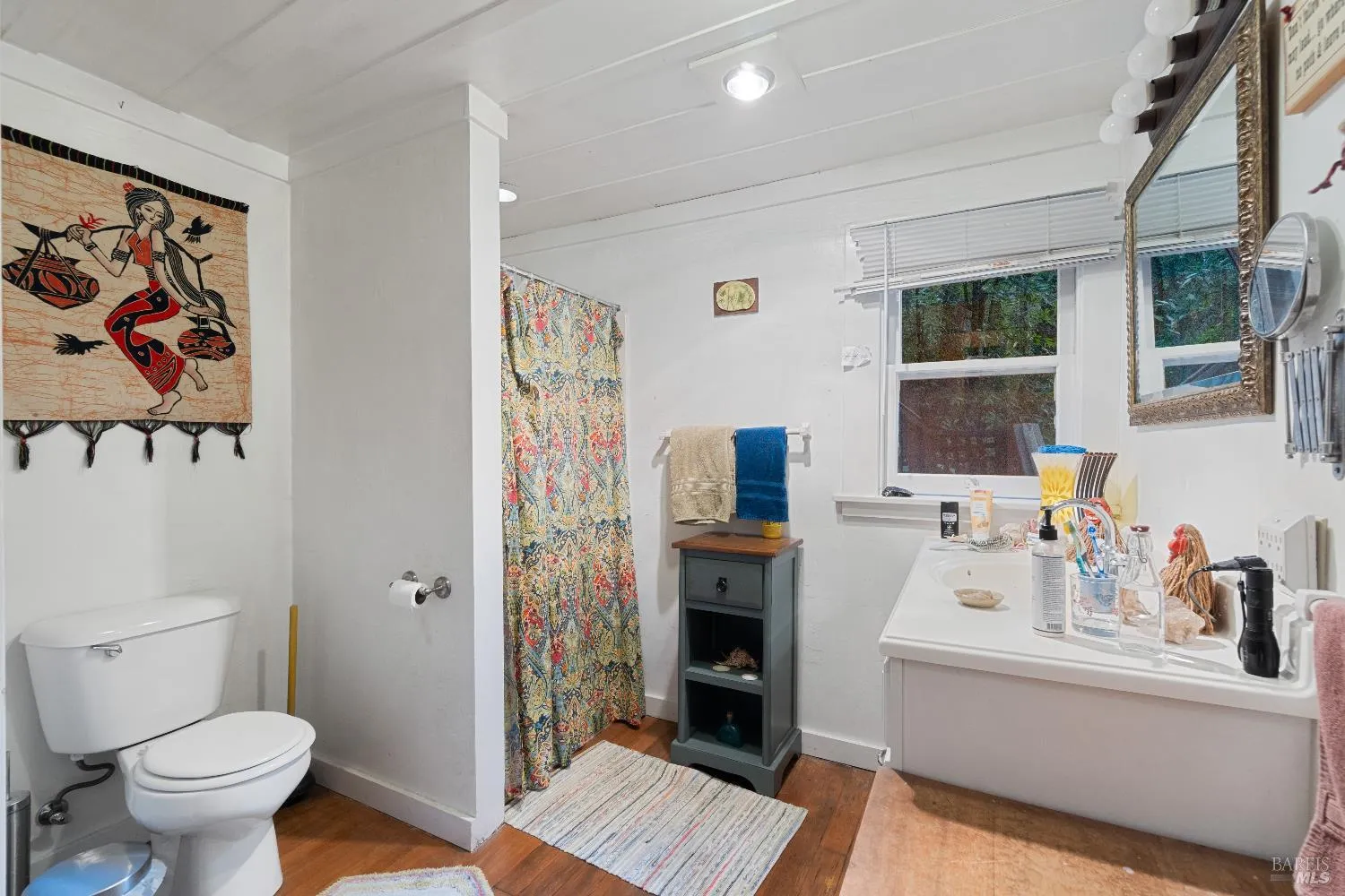Original 1915 era FIXER cabin in Monte Rio at the end of a cul de sac with huge potential. The main house has one bedroom, one bath, kitchen and an open living area with a lot of windows, old hard wood floors, and charm. The downstairs unit is in better condition than the main house and has a separate entrance with one bedroom, one bath, kitchen, living area, and a separate deck. There is also a detached garage with off street parking for one car and a storage area in the basement, below the downstairs unit, for all your excesses. Live in one and rent the other. Bring your imagination and build equity in Vacation Wonderland!