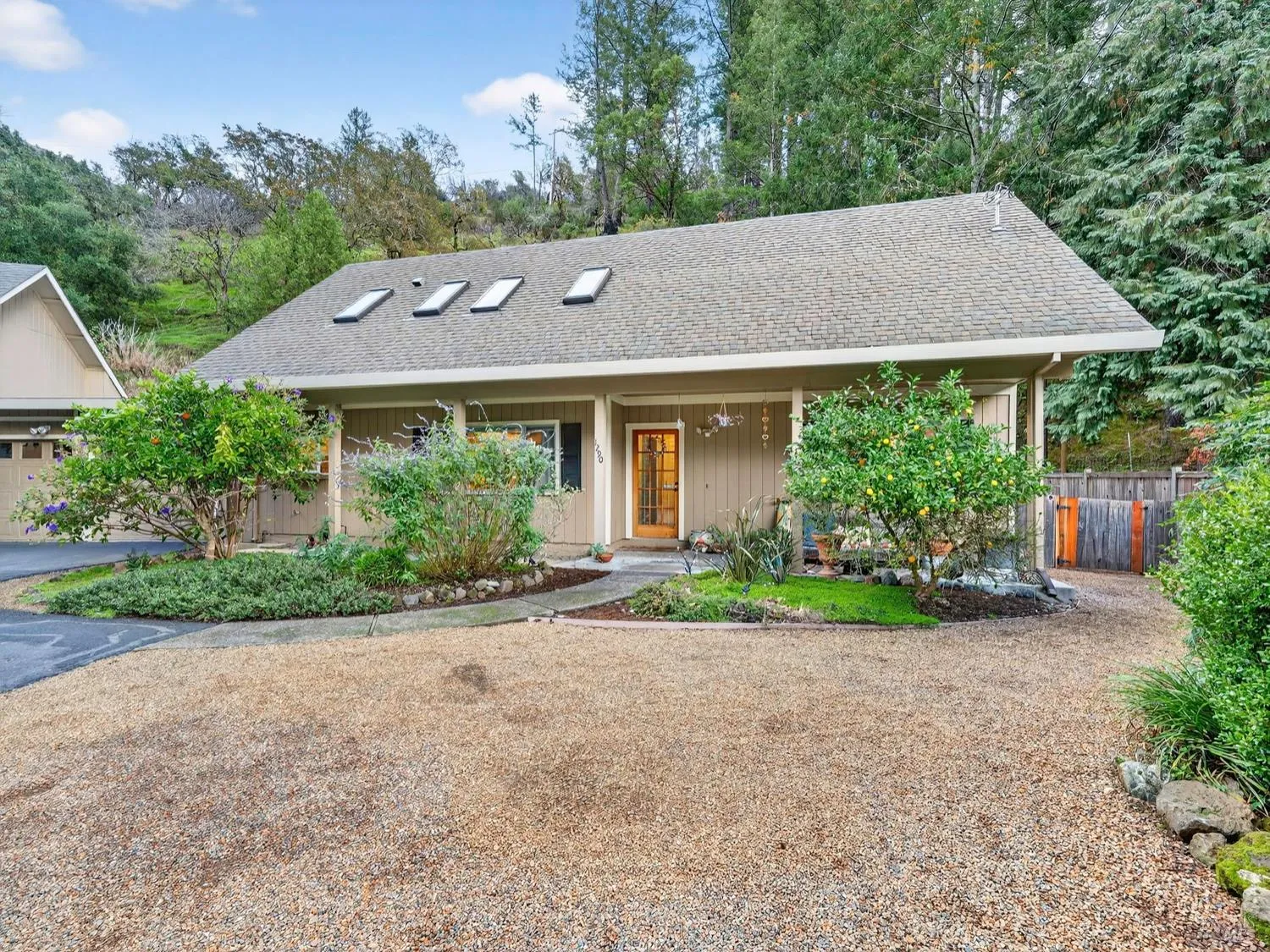 A rare find in Kenwood, this unique property features two homes tucked into a serene setting with a private hillside backdrop on just over an acre. Offering exceptional versatility for multigenerational living, rental income opportunities, or flexible space for extended stays and guests. One of the homes has been recently refreshed with new interior paint and LVP flooring on the main level, creating a light and inviting atmosphere as natural light pours in through large windows and skylights. Majestic wood beams throughout add warmth and character, giving the space a timeless Sonoma County feel. With garages thoughtfully positioned between the two homes, the layout provides separation and privacy, while each residence enjoys its own backyard. The expansive lot offers room to garden, entertain, relax, or simply enjoy the peace and quiet of country living, with ample space for extra parking or an RV. Located just five minutes from Hwy 12, the property feels worlds away, surrounded by nature and tranquility. Outdoor enthusiasts will appreciate easy access to hiking, biking, and camping, along with the calming sounds of a meandering creek flowing down from Sugarloaf Ridge State Park. Enjoy the best of both worlds, peaceful country living just minutes from Kenwood’s tasting rooms, dining, and nearby town amenities.