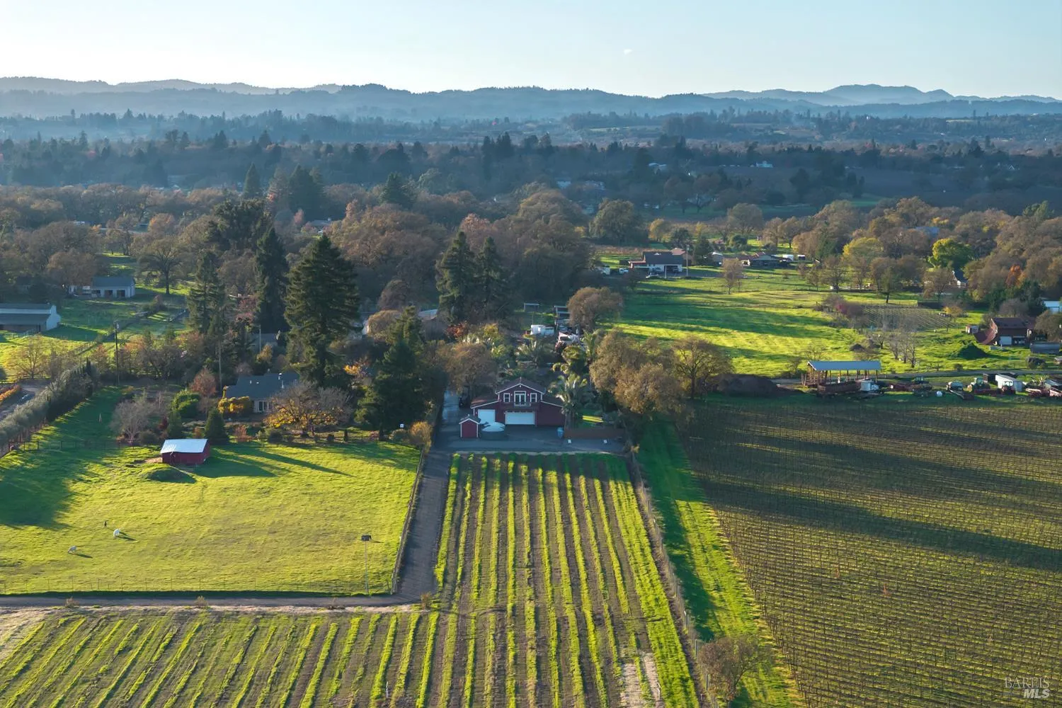 Set on 7+ acres of open space in the heart of Sonoma’s Russian River Valley AVA, this residence offers a rare blend of tranquility, utility and future opportunity. With replant permits valid for 10 years, the property is primed for vineyard development, making it an ideal choice for wine enthusiasts or those seeking an investment in Wine Country’s rich agricultural tradition. This single-level Craftsman estate was reimagined in 2013 by Harkey Construction. The 2,595 sq ft residence showcases soaring wood-beamed and cedar-lined ceilings, skylights, a wood-burning fireplace, and tumbled marble floors. The chef’s kitchen boasts leathered granite, Wolf appliances, Miele refrigeration, custom cabinetry, and a butler’s pantry. The serene primary suite features a spa-like bath with dual sinks, makeup vanity, and walk-in shower. Two additional bedrooms, an office nook, and a laundry/mudroom enhance flexibility. Entertain effortlessly in the resort-style yard with expansive patios, pergola, fountain, artificial turf, and Tonga lighting. A fully equipped outdoor barn-kitchen with BBQ, griddle, fridge, sink, TV, heater, and bar seating. Additional highlights include a climate-controlled barn/workshop with loft, gated entry, water filtration systems, two 5,000-gallon storage tanks with fire hose hookup, and ample parking for RVs, boats, and guests. A rare blend of elegance, privacy, and a lifestyle ideal as a primary home or Wine Country compound.
