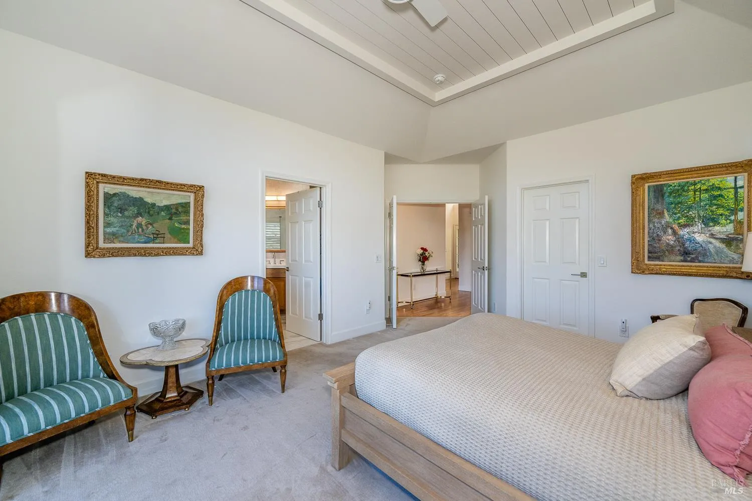 This exceptional El Verano floorplan – 2281 sq. ft. with 2.5baths – has been masterfully remodeled with uncompromising craftsmanship and design. Upon entry, half walls and faux posts have been removed to create an effortless, open flow. The kitchen, primary bath and hall bath feature stunning Calacatta Neolith Quartz counters, complemented by rift-sawn cabinetry in the hall and primary baths. The kitchen offers abundant storage, including an added pantry, and is equipped with stainless steel GE appliances, highlighted by a 5-burner gas range and a Fisher & Paykel dishwasher. The family room showcases and open wood-beam ceiling with tongue and groove detailing, while a double sided fireplace warms both the living and family rooms. Hunter-Douglas power shades easily filter the sunlight. The luxurious primary bath includes a freestanding jetted spa tub and a roll-in shower with Calacatta penny tile accents. The primary bedroom, living room and family room each offer easy access to the expanded deck, where panoramic views set the perfect backdrop for relaxation or entertaining. Laundry room includes newer washer & dryer. The approx 1/3 acre offers a lower patio, lawn and fruit trees. New Roof. Two-car garage with plenty of storage and an accessibility ramp.