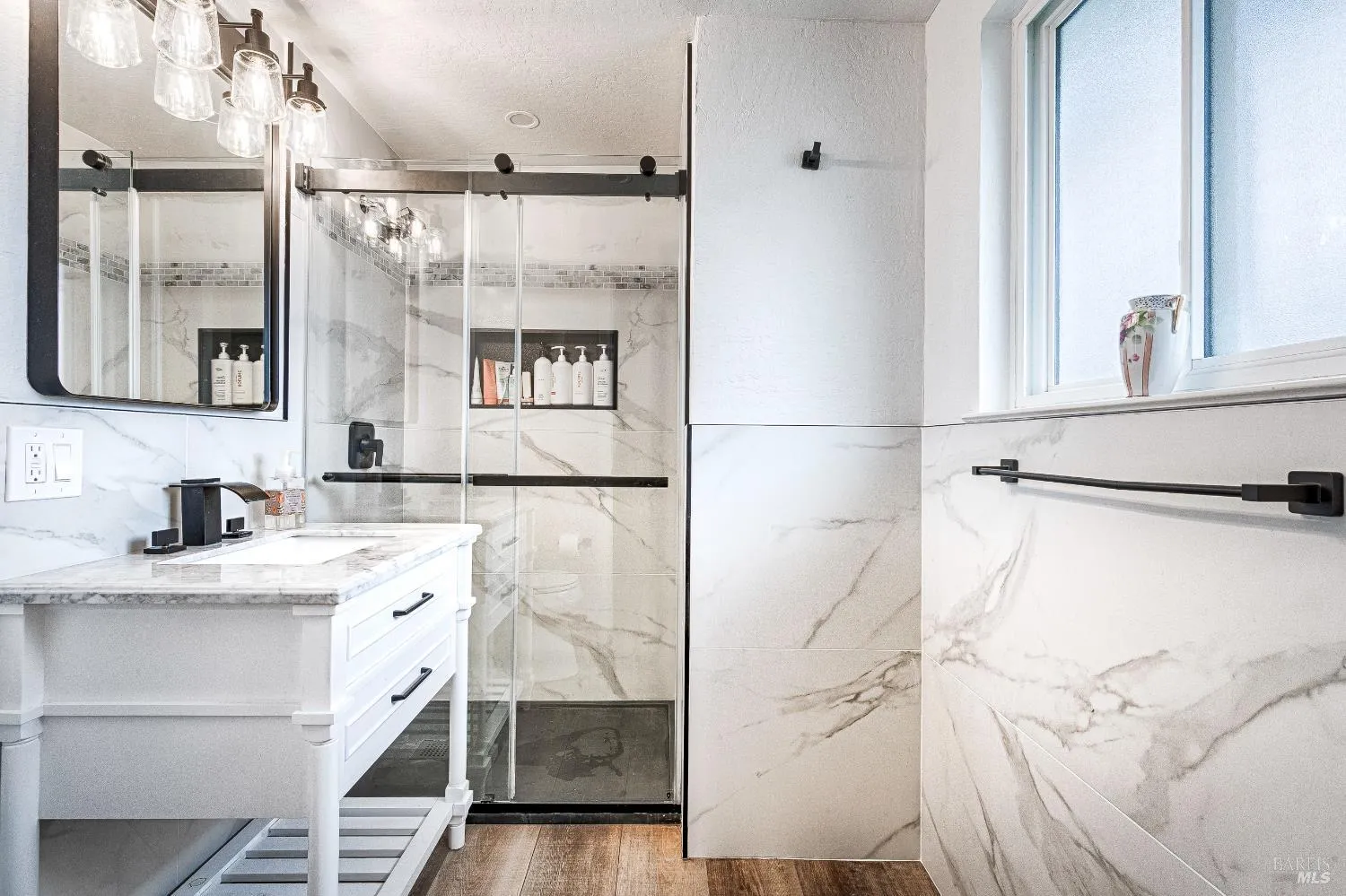 Blending classic comfort with modern upgrades, this fully renovated East Petaluma home showcases the best of convenient, stylish living. This single-story residence is filled with natural light and offers effortless living and thoughtful design throughout. Entertainers and home chefs will appreciate the stunning, fully updated kitchen featuring shaker cabinetry, quartz countertops, open shelving, premium appliances, and designer finishes. The home includes 3 bedrooms and 2 bathrooms, along with an attached two-car garageall crafted for maximum comfort and functionality. Vinyl plank flooring, gas fireplace inserts, a shiplap feature wall, and designer lighting add character and ambiance. French doors off the living room lead to your own backyard oasis, where a spacious patio creates the perfect setting for outdoor dining and entertaining. Situated on a corner lot with a 3-car driveway, there’s plenty of room for weekend toys, an RV, and more. Don’t forget about the community pool that’s located just down the street.