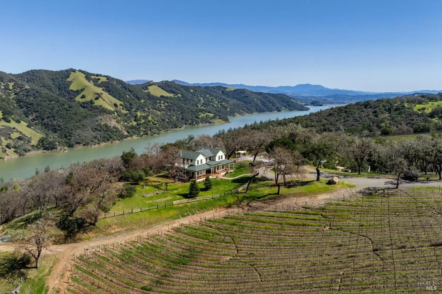 The 120 acre Pritchett Peaks Vineyard is nestled in the majestic coastal mountains west of the bucolic town of Healdsburg in what is the epicenter of the legendary Rockpile AVA. With the entire AVA made up of less than 160 planted acres, Pritchett Peak’s 45 acres of ultra-premium vines represents the most significant Rockpile holding to ever come to market and an opportunity for the savvy investor to acquire a once in a lifetime foothold in what is arguably the North Coast’s most significant AVA. The regularity restrictions that have come to being in recent years would make planting such a hillside vineyard in Rockpile today virtually impossible. In other words, this Pritchett Peaks Vineyard is irreplaceable. The Vineyard consists of 110 acres with 45 acres professionally planted and maintained to an ultra-premium combination of Zinfandel/Primitivo, Cabernet Sauvignon and Malbec. Production runs between 100 to 180 tons per year (5 year average of 125 tons per year). Five wells and a permitted 11 acre foot pond with pumps storage. Productive olive trees orchard. Pritchett Peaks’ Manor is +/-3000 square foot 4 bedroom and 3 bath masterpiece with its covered wrap around deck canopied by ancient oak pathway leading to pool.Private access to Lake Sonoma 17,000ac & 40 miles of trails