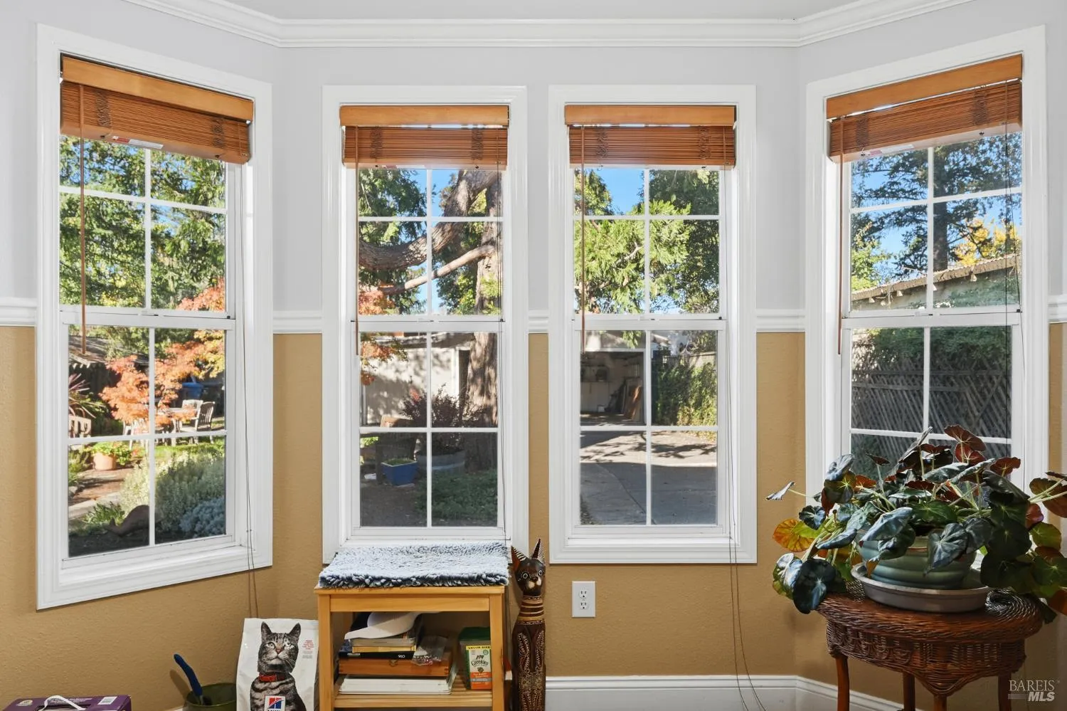Discover the charm of this 1920s Craftsman bungalow in the JC area, complete with a picket fence and covered porch. Thoughtfully expanded in 1994, the home blends vintage character with modern comfort. The main level features two bedrooms and one bath, along with classic details such as bay windows, extensive hardwood flooring, decorative trim and spacious living and dining areas with an attractive fireplace featuring a gas insert. The light-filled kitchen includes raised-panel maple cabinetry, granite countertops, and additional space that can serve as an informal dining area. The upstairs primary suite offers French doors and a full bath with a soaking tub and an oversized walk-in shower finished in travertine marble. The deep yard includes flagstone pathways, fruit and specimen trees, and a detached two-car garage with an attached structure suitable for storage or a workshop. A new roof was installed in November. With updates that vintage homes sometimes lack, such as a full-perimeter foundation, updated plumbing and electrical, recessed lighting, and dual-pane windows, this home combines classic character with practical improvements in a highly livable layout.