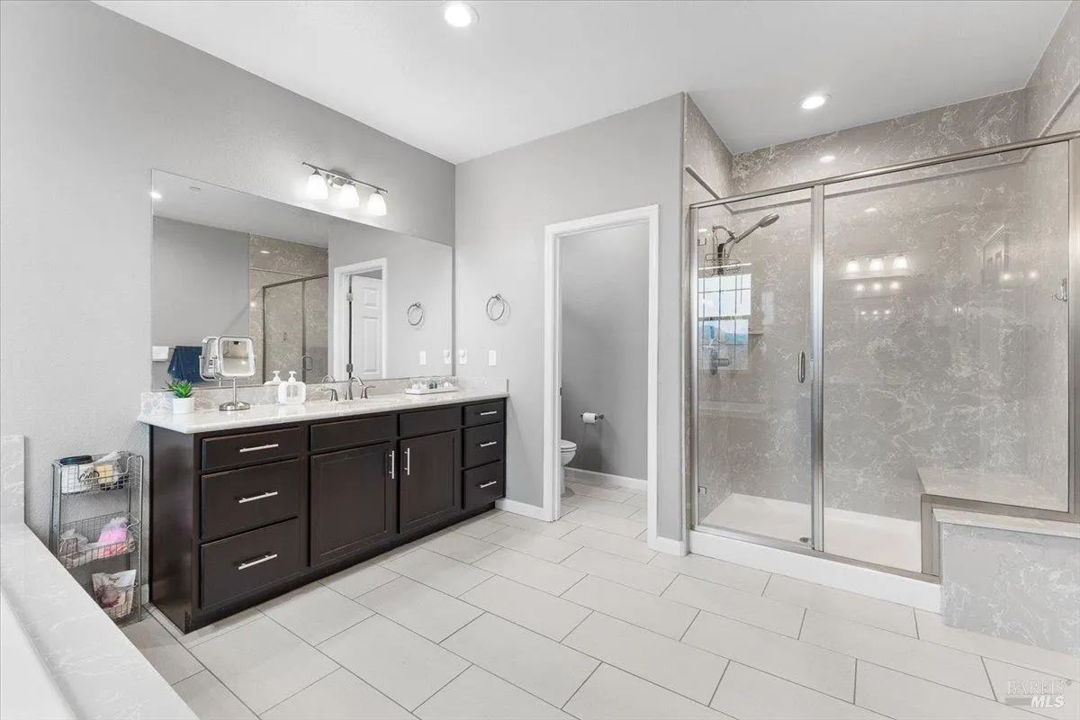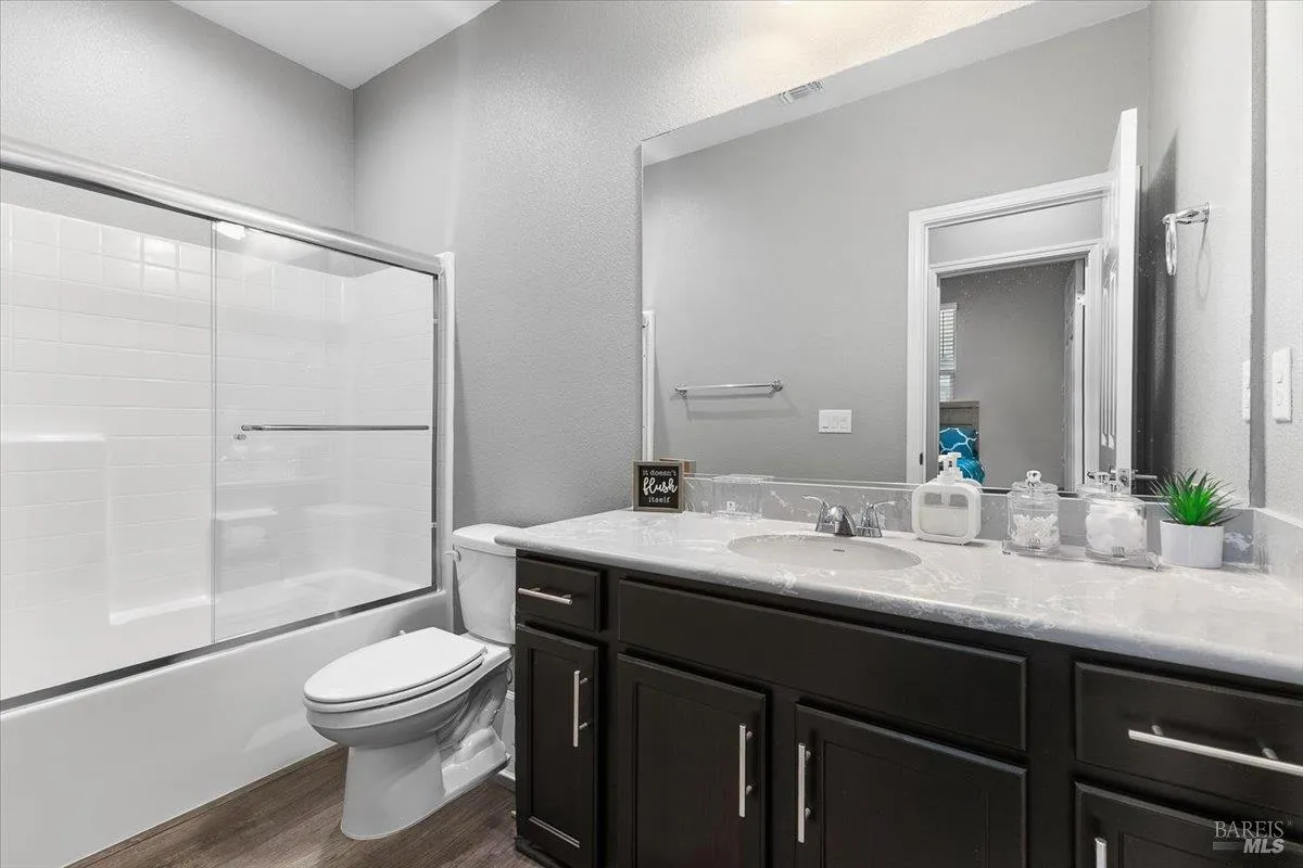 Experience modern living at its best in this impeccably maintained 2020-built home offering comfort, functionality, and style. With 4 bedrooms, a spacious den, and 3 full bathrooms across 2,499 sq. ft., the flexible floor plan is ideal for a variety of living needs. The open-concept main living area features durable LVP flooring, a cozy fireplace, and a well-appointed kitchen with natural stone countertops, dimmable lighting, ample storage, and seamless flow for everyday living and entertaining. Upstairs, the bedrooms and hallway feature like-new carpet, along with the added convenience of an upstairs laundry room complete with a sink. A main-level bedroom and full bathroom provide excellent flexibility for guests, multi-generational living, or a private home office. All bathrooms are finished with low-maintenance engineered countertops for easy care and durability. Step outside to the covered patio, which includes a gas stub for a future BBQ and offers a breezy, low-maintenance outdoor living space. Additional highlights include a spacious two-car garage with potential for EV charging and leased solar panels. Ideally located near SSU, shopping, dining, and convenient access to Penngrove and Santa Rosa. The HOA is $108.05 and includes front-yard maintenance, a neighborhood park, and a playground. Modern, stylish, and move-in ready, this home offers thoughtful upgrades in a desirable location.