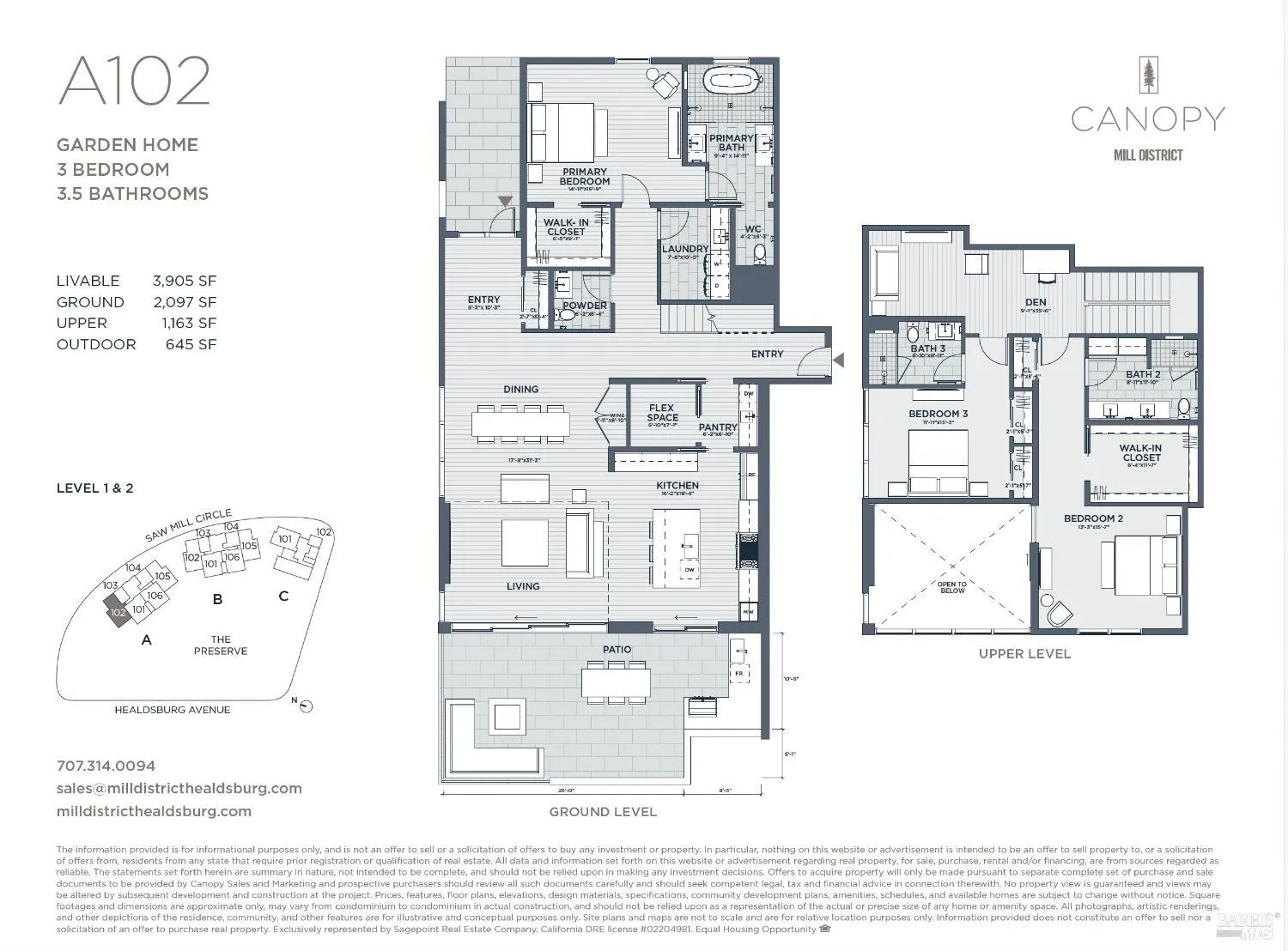 Residence A102 boasts exquisite Italian-made MandiCasa cabinetry, premium Miele appliances, temperature-controlled wine storage, Waterworks fixtures, natural stone countertops, and wide-plank hardwood flooring. The home features an impressive 18-foot vaulted ceiling and expansive floor-to-ceiling windows. Sliding glass walls open to reveal a generous 645 sq. ft. terrace, complete with a fully equipped outdoor kitchen and cozy firepit, perfect for gatherings with friends and family. The 10-acre Mill District community will also include a boutique hotel, a swimming pool, and a fitness center, elevating the overall living experience. Residence A102 is ready for immediate move-in, and model homes are now open for tours. Nestled in the heart of Healdsburg, the newly developed Mill District enclave offers a perfect blend of charm and sophistication. Just a short stroll from the picturesque central square bustling with Michelin-starred restaurants, tasting rooms, and vibrant art galleries, Canopy at Mill District presents a curated selection of spacious homes that seamlessly combine rustic elegance with modern urban flair. Enjoy luxurious finishes and resort-style amenities while immersing yourself in the beauty of the outdoors.