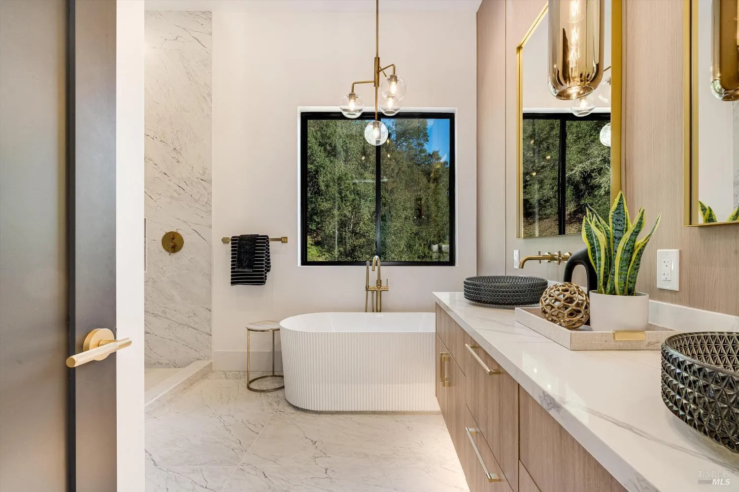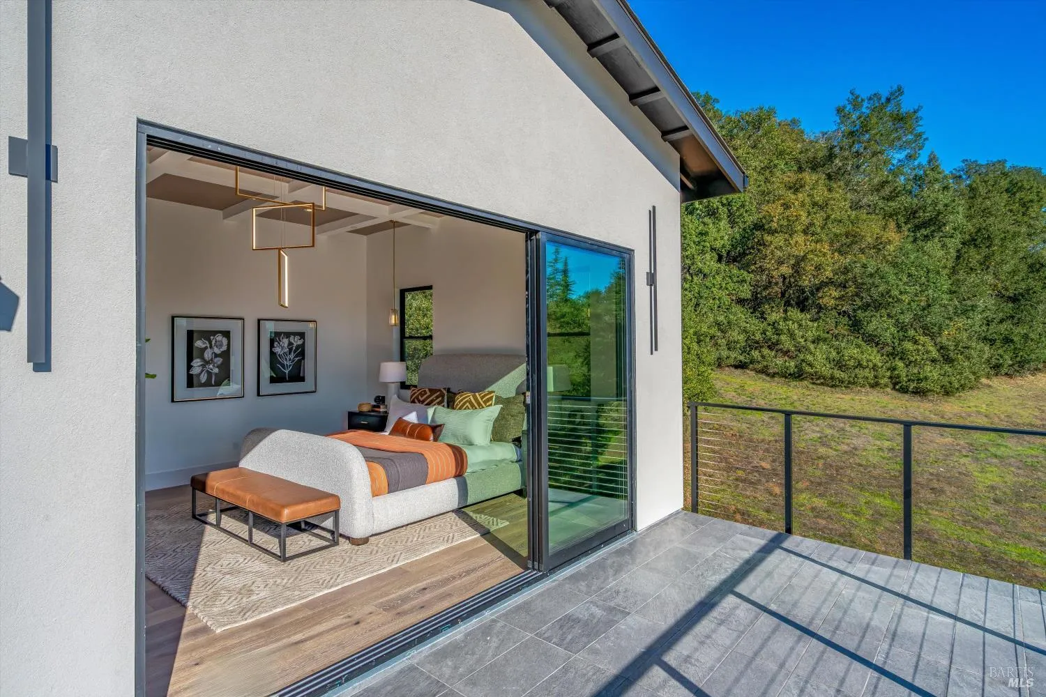Custom new build in the heart of Healdsburg, 5 min from Healdsburg Square. This 4 bedroom, 4.5 bathroom home includes an expansive 3 car garage with motor court, allowing ample off-street parking. The main level includes climate controlled wine storage adjacent to the open concept great room, dining and kitchen, which serves up artfully styled custom cabinetry and beautifully crafted hardware, layered lighting, 48” double oven gas range, 2 additional ovens, 2 dishwashers, built-in refrigerator, a pantry designed for entertaining, and an island for social seating. Also on the main level is an en suite bedroom, large laundry room, and a stylish powder room. Additional 3 bedrooms, including the primary en suite, 2 secondary bedrooms, bathrooms, and open loft area are all located upstairs with equally impressive views. Multiple decks and private patios, offer a variety of places to enjoy the Mediterranean climate. Professionally landscaped throughout. The home is bathed in natural light with views of rolling hills from nearly every window. Stacking sliding glass doors offer effortless transitions to the outdoors. Evening brings city light and sunset views. Rich wood detailing offers layers of warmth, with modern sophistication