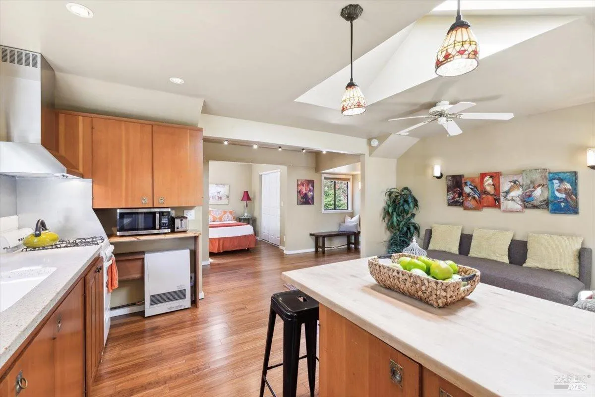 New Year, New Home?? Affectionately known as Eden, this exceptional 3-dwelling compound offers endless possibilities. Atop a private driveway, the 1.03-acre lot features seasonal creeks, majestic oaks, and stunning Bennett Valley views. Currently a thriving vacation rental, but could be a private estate, multigenerational enclave, or live/work space. In the Main House (3 beds/2 baths), gather with loved ones around the chef’s kitchen island, cook together on the Viking range, and let the open living/dining room flow with conversation and laughter. When the evening winds down, step from the primary suite out through French doors to the hot tub, where you can savor one last glass of wine under the oaks and stars. The second home, the Post Office (2 beds/2 baths) features small luxuries like stone countertops, steam shower, fire pit, and views of nature from every window. The Studio is a peaceful hideaway where you can sip coffee in bed while watching deer graze outside. Additional highlights: EV charging, stone countertops, parking, and a storage container. A peaceful escape just minutes from Whole Foods, Bennett Valley Golf Course, restaurants, shopping, and wineries. Whether seeking a family compound, income property, or weekend escape, Eden awaits.