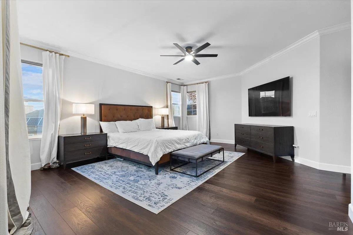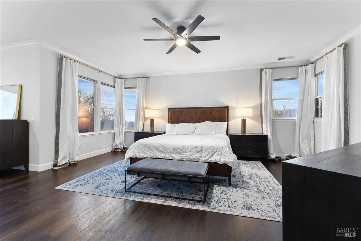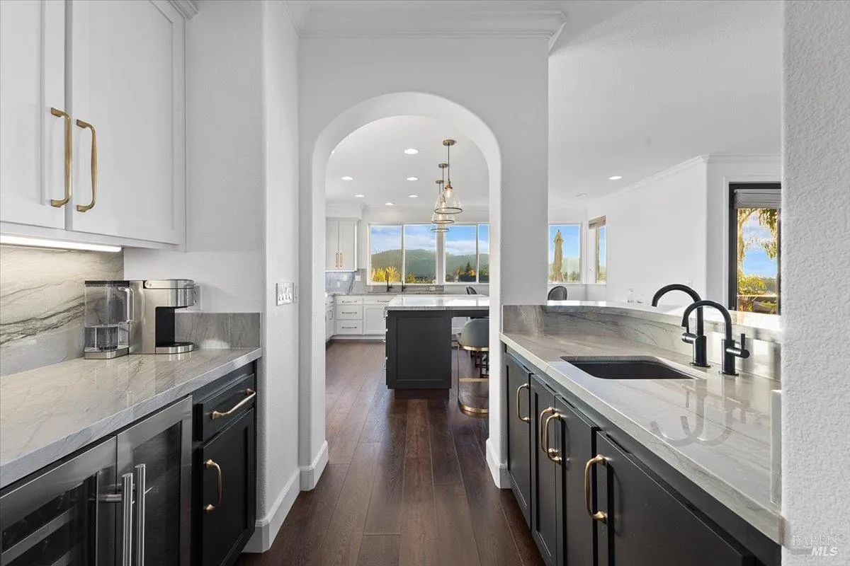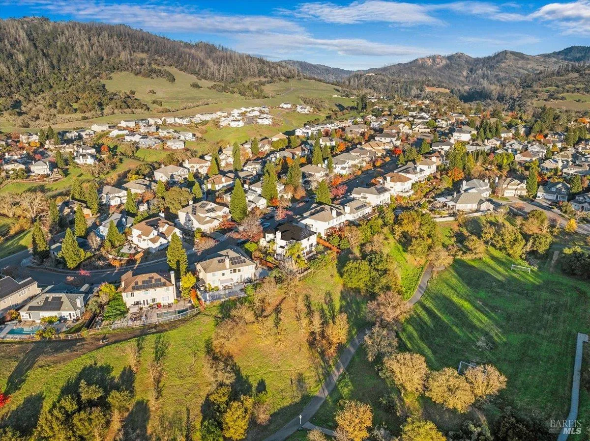 Perched on a premier street with sweeping outlooks, 5866 Sailing Hawk Ave is a rare blend of grand scale and curated, tactile luxury. Built by Christopherson, this home reflects quality construction and premium finishes throughout. Spanning over 3,700 square feet, the residence has been thoughtfully refined to deliver an elevated lifestyle that is both functional and striking. The experience begins upon entry, where a dramatic wrought-iron staircase anchors the foyer and sets a tone of quiet sophistication. At the heart of the home is a completely updated chef’s kitchen, designed for connection and everyday enjoyment, featuring custom cabinetry, striking stone surfaces, and distinctive solid, uncoated brass hardware. This living finish brings warmth, substance, and timeless character to a space meant to be lived in and loved. The main level flows seamlessly from formal living and dining rooms into a relaxed family space, centered around one of two inviting fireplaces. Expansive windows draw the eye outward to scenic vistas across the surrounding hills and parklands. Just beyond, the generous southwestern-facing rear deck is ideal for sunset entertaining and includes architectural plans for accordion doors, offering the opportunity to further enhance indoor-outdoor living. Upstairs, versatility continues with a spacious landing, reading nook, and open loft perfect for a home office, media lounge, or library. The accommodations are both rare and thoughtfully arranged: an expansive primary suite with walk-in closet and spa-inspired bath, along with two additional junior suites, each with its own attached bathroom. ideal for guests or multi-generational living. Recent refinements include a fresh designer paint palette and upgraded flooring throughout. A Tesla solar system supports exceptional energy efficiency and long-term sustainability. Located within a top-rated school district and moments from premier shopping, dining, and Trione-Annadel State Park, this is more than a home it is a legacy property ready for its next chapter.