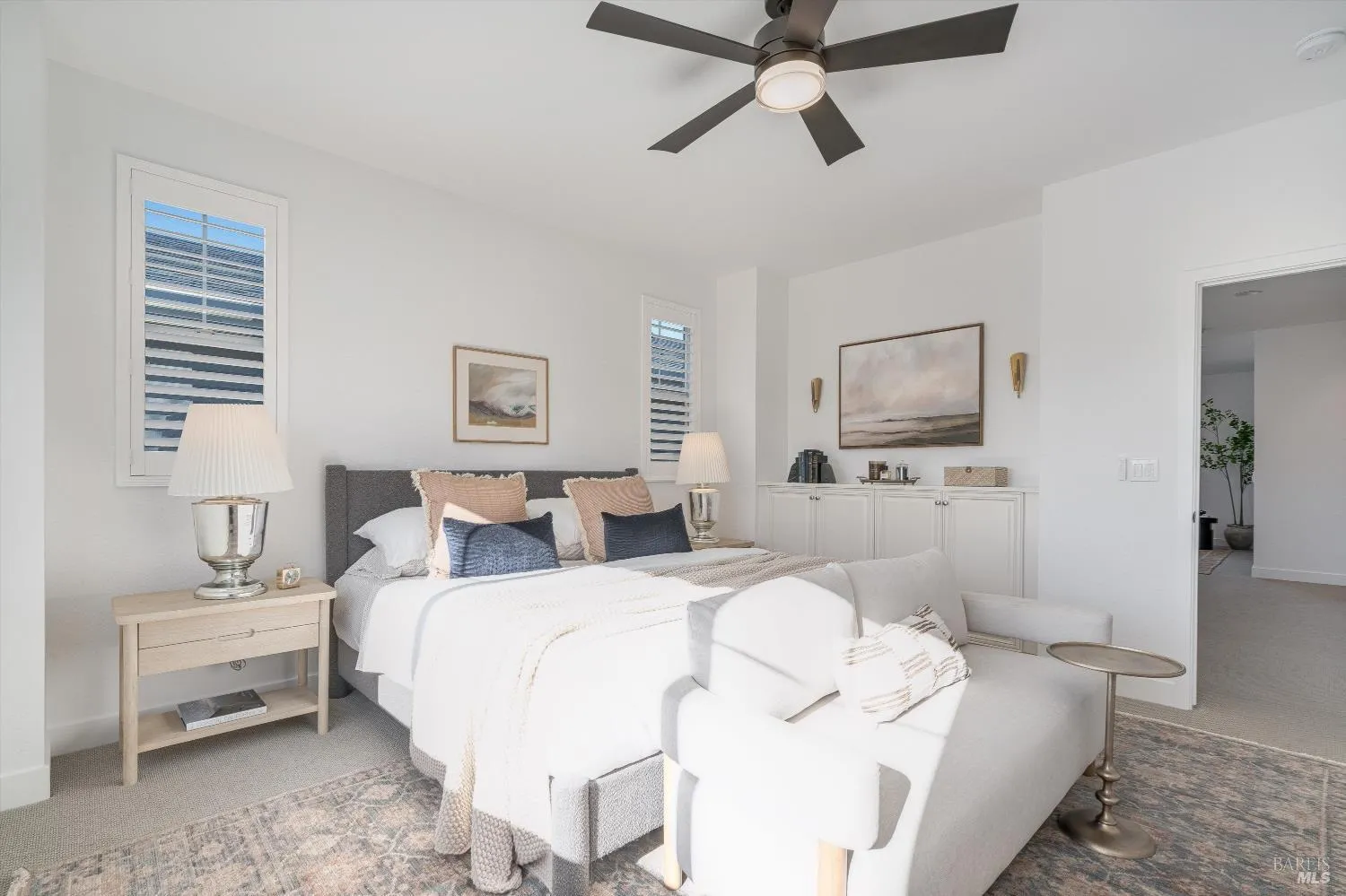 Located in the Fox Hollow subdivision in Northwest Santa Rosa, this 2019-built single-family home offers approx. 2,400+ sq ft, 4 bedrooms, and 3 full bathrooms in an award-winning City Ventures community. Situated on a cul-de-sac, this newer construction home with modern design The open floor plan includes a light-filled living area, dining space, and kitchen with a large island breakfast bar, stainless appliances, and direct flow into the family roomideal for entertaining and everyday living. This home features contemporary finishes, high ceilings, and abundant natural light throughout. A main-level bedroom with full ensuite bathroom provides a desirable guest suite, home office, or multigenerational living option. Upstairs includes a spacious flex / media loft that can be converted into a 5th bedroom, along with a primary suite featuring custom built-in closet. Outdoor features include a south-facing backyard with a paver patio, covered pergola, and raised planter beds, offering low-maintenance outdoor living space. A north-facing front porch adds additional outdoor seating and curb appeal. Additional highlights include custom garage cabinetry, ample storage, and energy-conscious construction. Offering a community park and direct access to Peterson Creek Trail, ideal for walking and outdoor recreation. Conveniently located near Sonoma County wineries, fine dining, shopping, and commuter routes, with easy access to Santa Rosa, Sebastopol, and the greater Bay Area. A rare opportunity to own a move-in ready, newer home in Sonoma County with modern amenities and a functional layout.