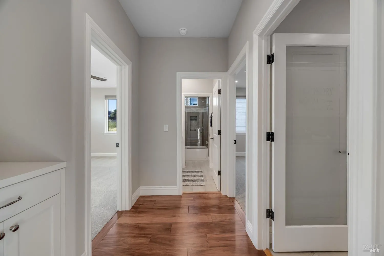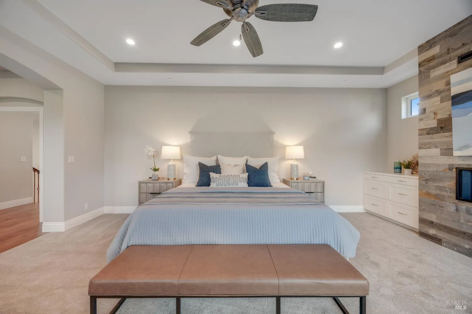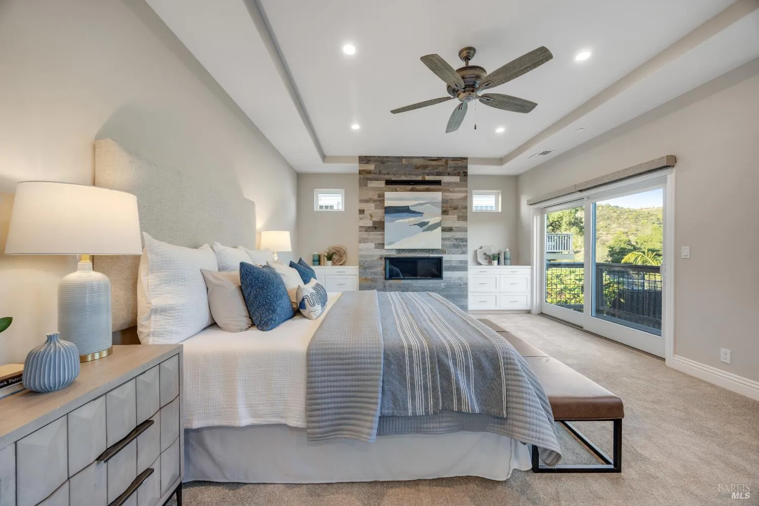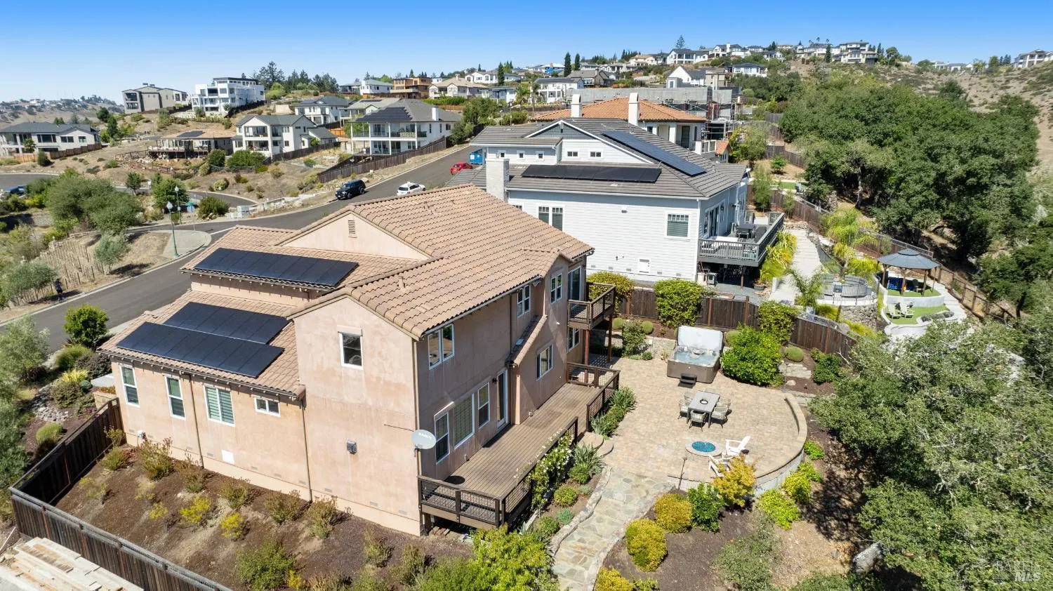 This modern, luxurious Fountaingrove gem blends elegance, comfort, and functionality across 3,818 sq. ft. of meticulously designed living space. Nestled on a generous 0.41-acre lot, this 4-bedroom, 3-bath home features a spacious loft, tile roof, and a 4-car tandem garage perfect for today’s lifestyle. Step through the impressive entry to find crown molding and rich Acacia wood floors flowing throughout the main living spaces, setting a tone of warmth and sophistication. The formal dining room invites effortless entertaining, while the serene living room provides a peaceful retreat with tranquil views. The expansive great room centers around a stunning gas fireplace framed by custom built-ins and surround sound, seamlessly opening to the chef’s kitchen. Culinary enthusiasts will love the granite countertops, soft-close cabinetry, pendant-lit island, Wolf double ovens and range, Sub-Zero refrigerator, KitchenAid dishwasher, and butler’s pantry with wine storage plus a walk-in pantry with decorative glass door. The luxurious primary suite offers a private sanctuary featuring a cozy gas fireplace, coffered ceilings, dual walk-in closets, custom built-ins, private deck, spa-like bath with soaking tub, glass shower, and dual granite vanities. A dramatic staircase leads to the versatile upstairs loft, ideal for a media room, home office, or play space. Additional amenities include upstairs laundry, central heat/air, soft water system, owned solar, alarm system, and a whole-home Generac generator for ultimate peace of mind. Step outside to beautifully landscaped grounds with a paver patio, gas firepit, flagstone pathways, and a relaxing luxury spa all backed by open space for added privacy. A rare opportunity to experience elevated Fountaingrove living refreshed, refined, and ready to welcome you home.