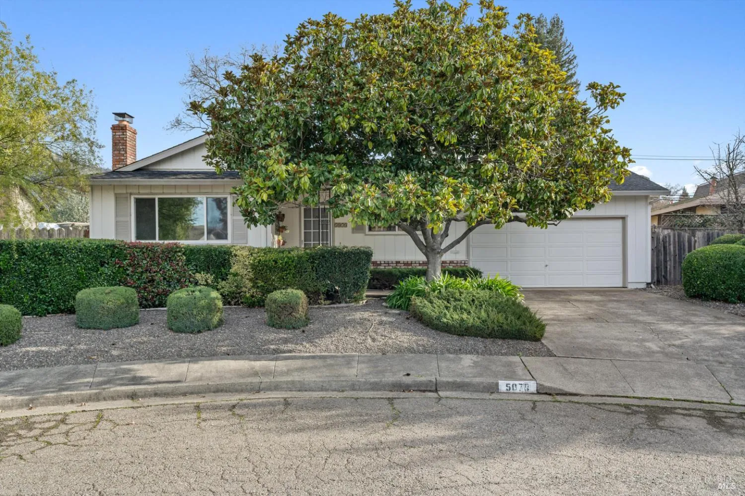 Tucked away at the end of a quiet cul-de-sac, this sweet home has been lovingly maintained by the same owner for 40 years. Featuring two spacious bedrooms and two full bathrooms, the home includes a primary suite with walk-in closet and private en suite bathroom. Two separate living areas provide multiple options for your imagination. Fresh new carpet enhances the well-maintained interior, reflecting years of pride of ownership. Other highlights include a low maintenance front and back yard with wide side yards, central air conditioning, garage work bench, and a covered patio in the back for year round enjoyment. A peaceful setting combined with comfort and care make this a truly special opportunity.