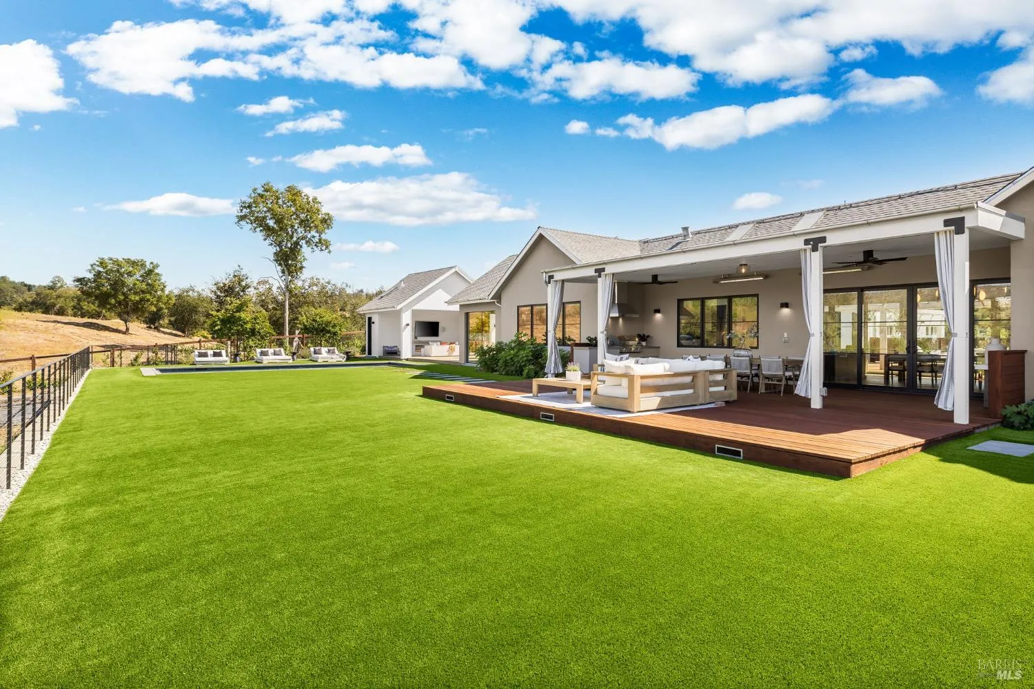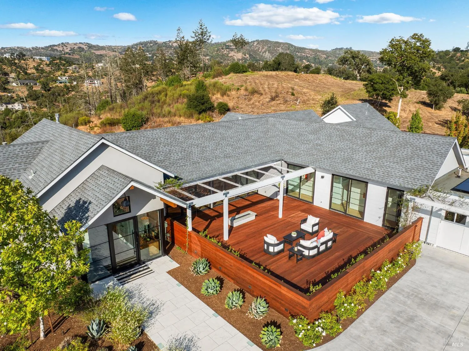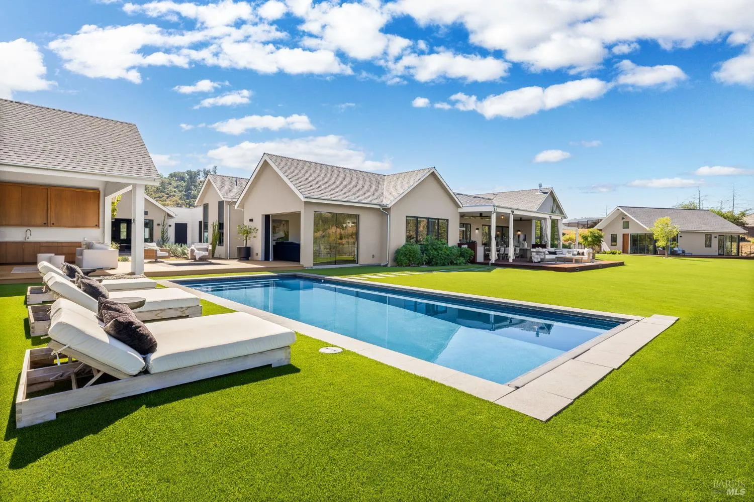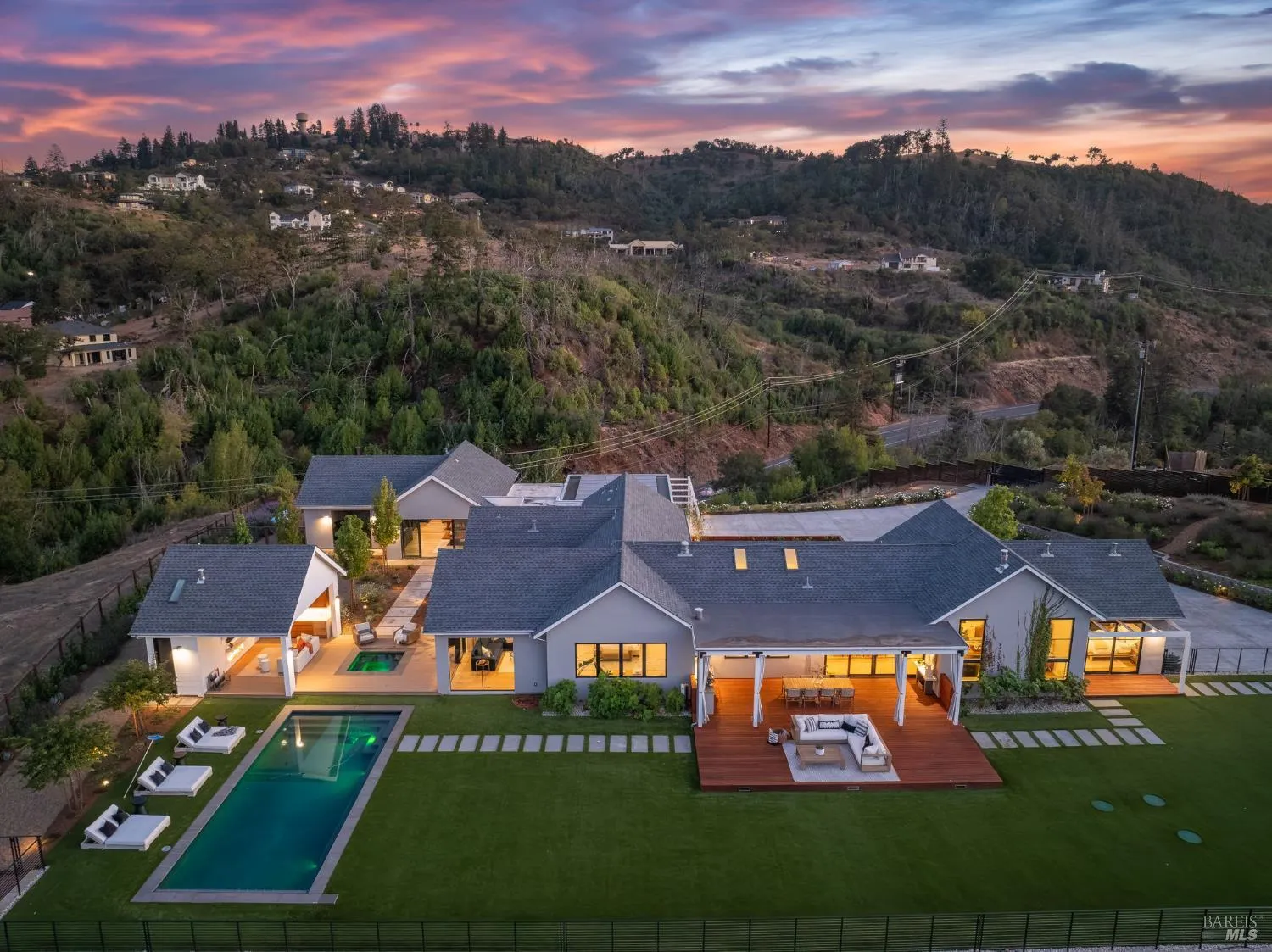 Experience privacy, luxury, & breathtaking vistas on this gated 3.27-acre estate, featuring 3 distinct buildings for a true compound feel. This single-level main residence showcases an open floor plan with vaulted ceilings. The expansive primary suite includes a grand designer’s walk-in closet & a marble-appointed bathroom, while each guest bedroom offers its own ensuite bath & private exterior access. At the heart of the home, the gourmet kitchen is a chef’s dream with Viking and Sub-Zero appliances, an oversized island, & seamless flow to the expansive covered deck and outdoor kitchen. Designed for entertaining, the grounds boast a sparkling in-ground pool & spa with a cabana featuring a fireplace, bar, outdoor shower, and full bathroom. Additional highlights include: Owned solar panels,Lutron lighting system, a detached 1,000 sqft gym/office/media suite and a newly added flexible space perfect for a wine cellar or custom use. Enhancing the property further, a beautifully designed 1,000 sq. ft. guest house with tall ceilings offers a full kitchen with Bertazzoni appliances, 1.5 baths, & a private bedroom ideal for guests, multi-generational living, or income potential. This exceptional property blends elegance, comfort, & every amenity for the ultimate wine country lifestyle