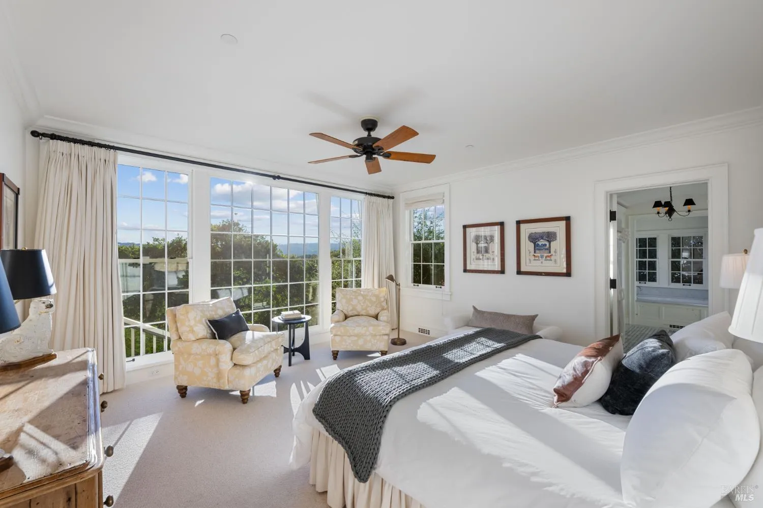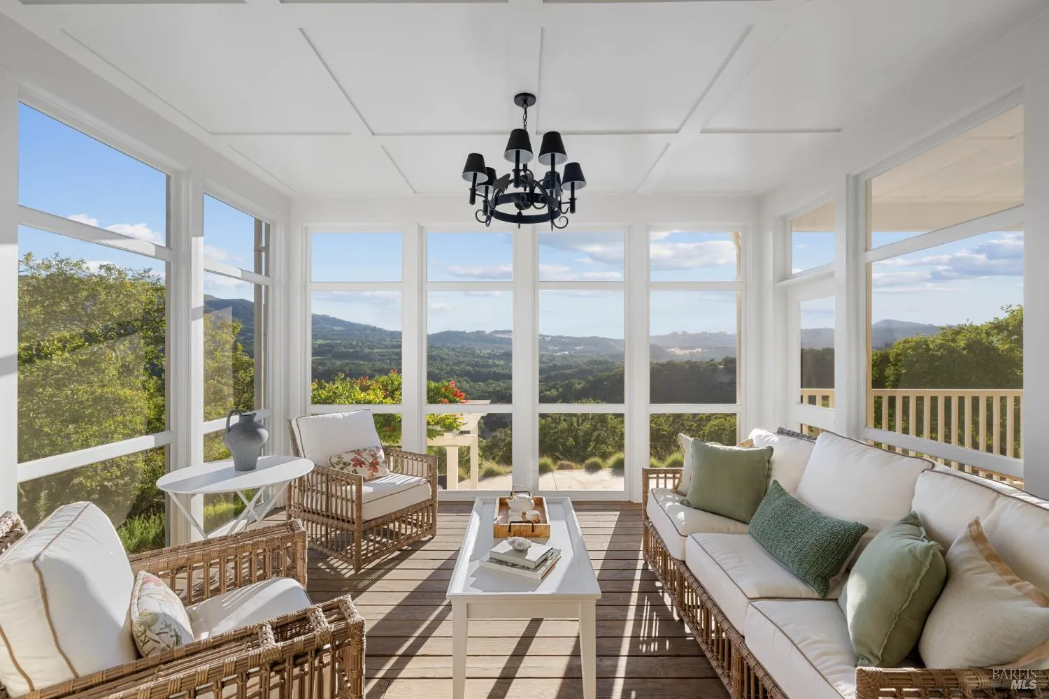 This exquisitely designed four-bedroom home, known as Covey Hill for the quail that frequent its grounds, is located just minutes from the charming village of Glen Ellen. An open living and dining area includes a gas fireplace and French doors opening onto an expansive veranda with spectacular views. A spacious kitchen boasts stainless steel Viking appliances, a dining nook, and access to the screened-in porch. The main-level primary suite provides added privacy, featuring a spa-like bathroom, while three guest bedrooms and bathrooms are located on the second story of the home. Below the veranda sits a built-in saltwater pool and a large patio perfect for gathering. A full bathroom, flex space, and wine cellar are also located on the patio. The detached two-car garage includes a private studio apartment above, providing additional guest lodging or rental income. Set on 22 wooded acres, the property also features two acres of vineyard and a producing olive orchard. With its natural beauty, refined living spaces, and serene setting, Covey Hill at 2220 Warm Springs Road is a tranquil retreat in a dream Wine Country location.