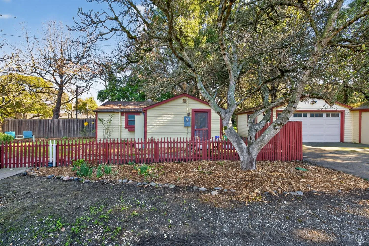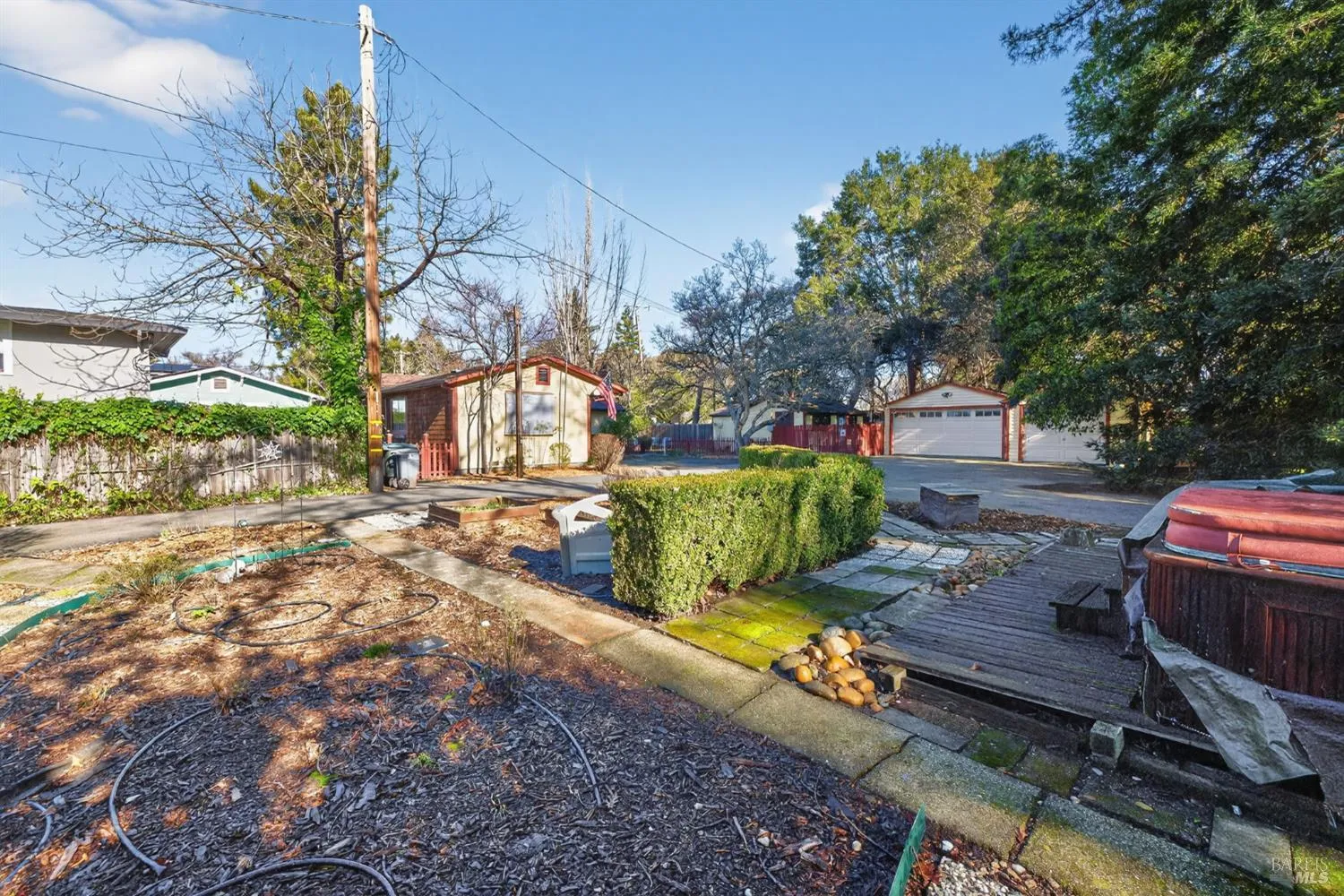 A main home and separate cottage anchor this rare Creekside property with detached garage space and generous parking, set on a private lane at the end of a quiet cul-de-sac just minutes from downtown Santa Rosa. Mature trees frame the property, with the Creekside setting creating a calm, tucked-away feel. The main residence offers two bedrooms and one bathroom, wood floors, a cozy living room with fireplace, and a dining area off the kitchen. A side laundry room and pantry add everyday function, and a large family room with built-in bookcases provides a flexible living space. The home has warmth, character, and clear potential for your own updates. The detached one-bedroom, one-bath granny unit features a comfortable cottage feel and its own sense of charm. A detached garage includes a larger bay door along with an additional one-car garage, offering versatile storage and parking options. Decks overlook the creek, garden beds receive good sun exposure, and the backyard includes lawn space and shaded seating beneath mature trees. This home is on City water but also has a well for gardens and irrigation. Peaceful and private, yet close to downtown Santa Rosa with a variety of dining and shopping. Visit nearby wineries or enjoy a short drive to Bodega Bay. This property offers a rare opportunity to refresh and personalize a truly special setting.