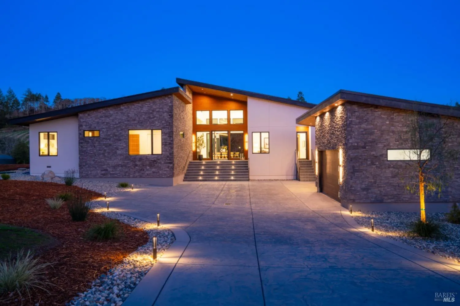 Newly Constructed Kenwood Contemporary Estate in Coveted Sonoma Wine Country. This custom single-level estate in Kenwood blends modern design with the natural beauty of Sonoma Valley. Set on 1.42 acres along desirable Lawndale Road, the 4,302 sq. ft. home offers privacy and luxury just minutes from world-class wineries and restaurants. The open floor plan includes 4 bedrooms, 3.5 baths, an office, and a media room. Expansive windows and 10-ft sliding doors bring in natural light and vineyard views. The chef’s kitchen features high-end appliances, custom cabinetry, and a large island ideal for entertaining. Every material and finish has been craftfully chosen designed with both elegance and practicality in mind. Two primary suites offer spa-like bathrooms and stunning outlooks. Additional bedrooms are perfect for guests or flexible use. Designed for indoor-outdoor living, the landscaped grounds include patios and open-air spaces that flow into the surrounding vineyard landscape. Located 10 miles from Sonoma Plaza, 12 from Santa Rosa, and just over an hour to San Francisco, this property offers the perfect blend of wine country seclusion and convenience.