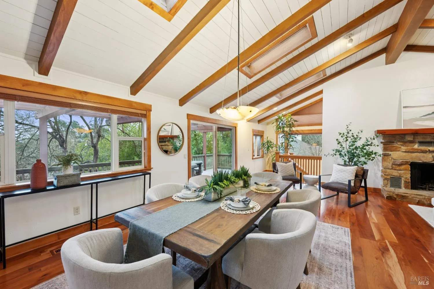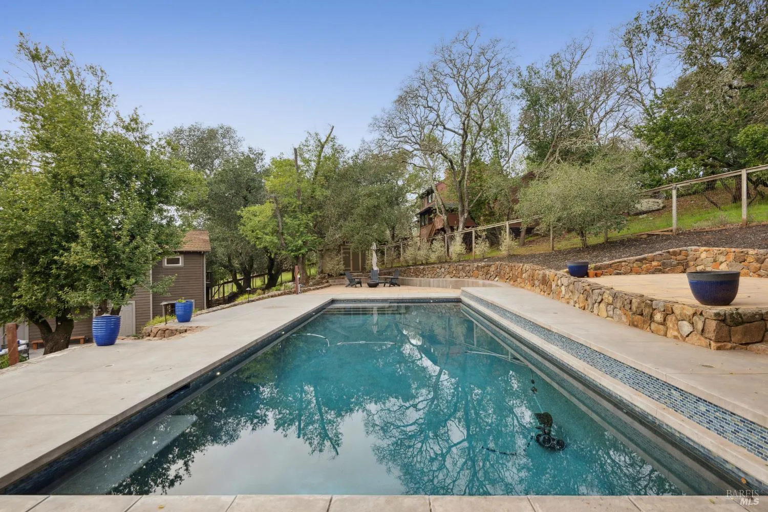 Reimagine a well-located home with space, privacy, and views, creating something truly special in one of Santa Rosa’s most desirable settings. This Bennett Valley estate with its enduring style and resort-like yard is poised for its next chapter. This spacious, well-laid-out home offers a sense of privacy that feels worlds away yet sits just minutes from amenities, parks, and miles of hiking and biking trails. The truly exceptional backyard is thoughtfully designed for both grand entertaining and everyday enjoyment. The expansive deck unfolds from the breakfast room – an ideal setting for large gatherings or peaceful lounging surrounded by nature. Handsomely laid stone steps guide you to your own private retreat on the terrace, perfectly positioned to capture sweeping views of the hills while offering space for sun and relaxation poolside. The grounds are enriched by an abundance of mature fruit trees, a hobby vineyard and plantings, giving the landscape a lush, established feel. The result is a backyard that is nothing short of extraordinary, a haven that feels both expansive and intimate, beautifully curated yet natural, and one of the home’s most remarkable features. Vaulted, beamed ceilings crown the living room, where a dramatic stone fireplace anchors the space and creates a timeless focal point. Adjacent dining area flows effortlessly to the kitchen, perfectly positioned for both intimate dinners and social get-togethers. The generously sized kitchen is a true hub for daily life featuring a large center island, cooktop, double ovens, and abundant storage – ideal for those who enjoy cooking, hosting, or simply gathering around the heart of the home. The main level offers comfortable and mostly single-level living with a primary suite, three additional bedrooms, two bathrooms, laundry room and access to garages. The lower level adds flexibility with a large family room complete with wet bar, full bathroom, plus a spacious room for a bedroom or office. A separate entrance makes this level ideal for guests, extended family, or potential second unit. Additional highlights include a wine cellar, 2-car garage with storage and ~800sf bonus room with half bath above it, offering endless possibilities for a studio or creative space. Timeless Design. Enduring Style. Exceptional Setting.