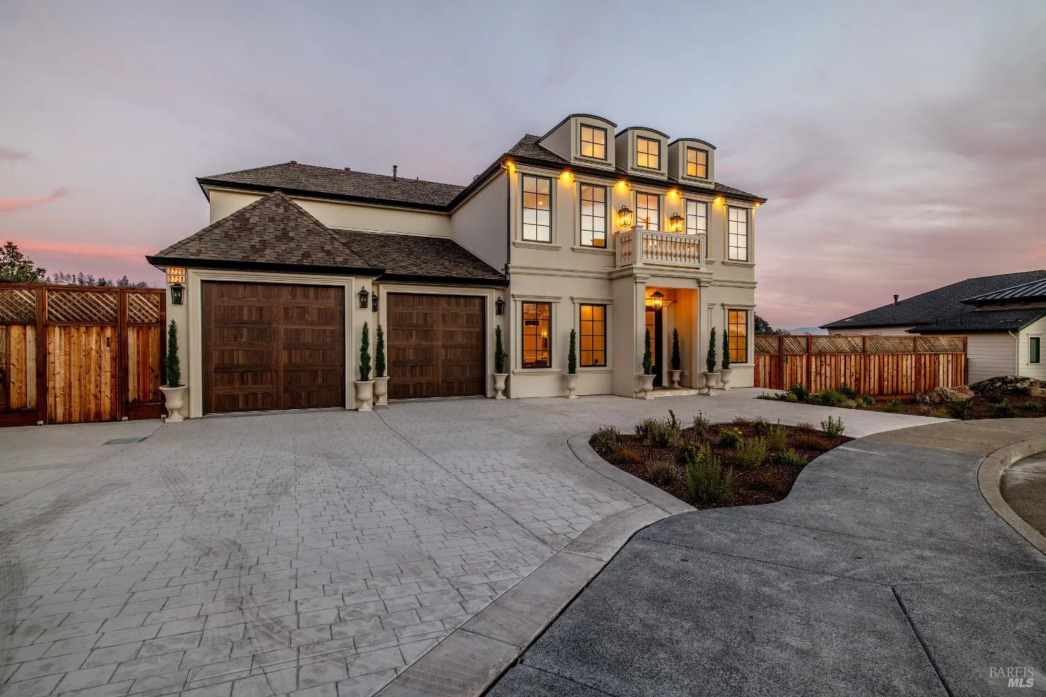 This stunning, newly constructed Fountaingrove residence delivers a rare blend of architectural elegance, elevated design, and breathtaking views. Spanning approximately 3,075 square feet, the four-bedroom home reflects a refined French Provincial influence, thoughtfully reimagined for modern living. The kitchen anchors the home as a true showpiece, highlighting marble countertops, bespoke cabinetry, and professional Italian appliances that marry form and function with striking effect. Every space is designed to feel intentional, with refined finishes and seamless transitions that invite both connection and comfort. Walls of windows frame panoramic views of the Santa Rosa skyline, the lush fairways of the private 18-hole golf course, and the serene hillsides of Fountaingrove, creating a living backdrop that evolves throughout the day. Adding exceptional versatility is a 686-square-foot, fully independent ADU complete with a separate address, utilities, and a full kitchen featuring marble countertops and Italian appliances. Whether used for guests, multigenerational living, or rental income, it offers flexibility without compromise. Just moments from downtown Santa Rosa, this home offers effortless access to world-class dining, boutique shopping, and a vibrant arts scene, making it as convenient as it is captivating.