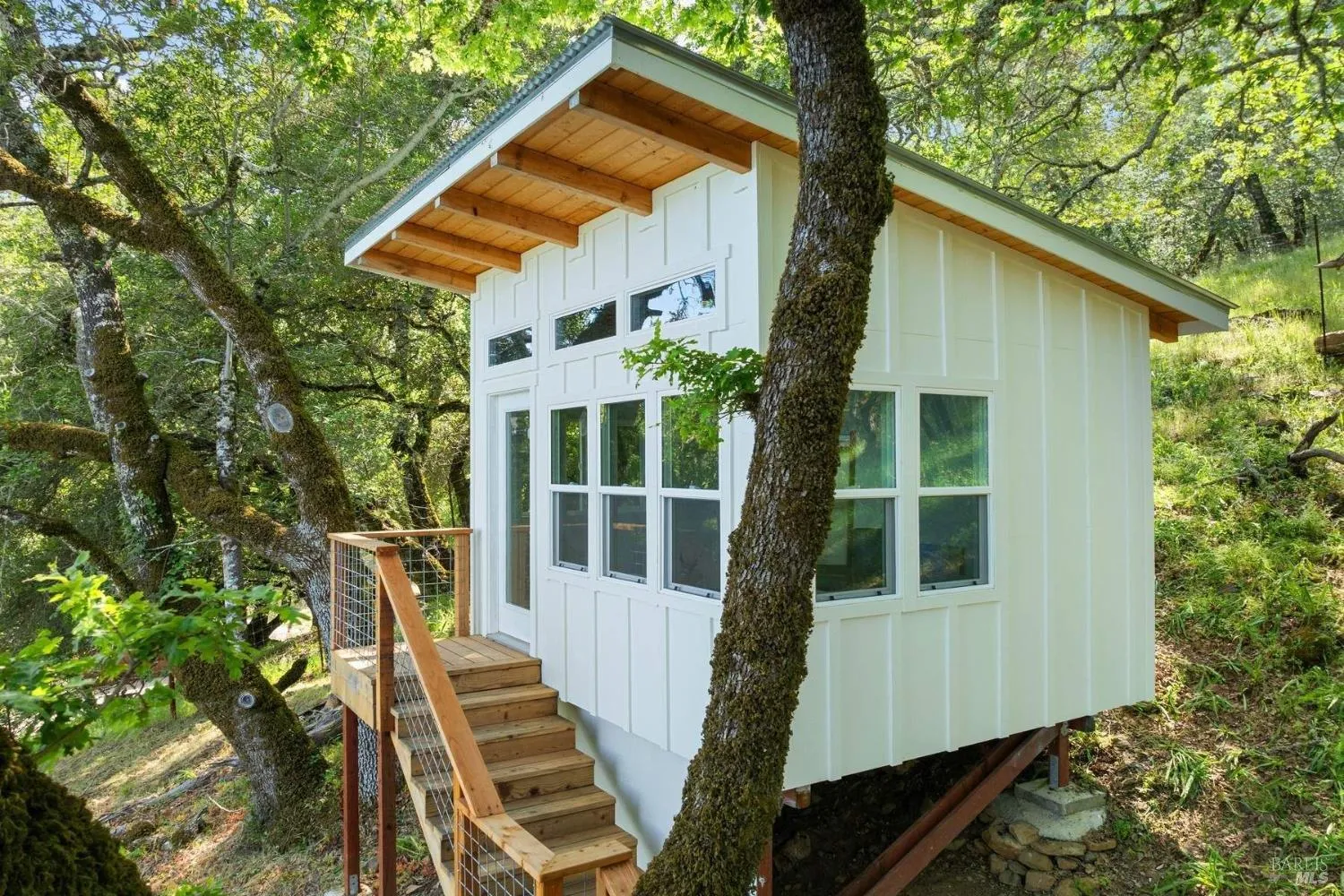 Set on 1.48 acres in Sonoma’s coveted Diamond A neighborhood, this light-filled 3BD/2BA retreat offers privacy, expansive views, and exceptional indoor-outdoor living. The single-level main home has been newly painted inside and out, featuring a crisp dove white exterior, an open floor plan, and an updated kitchen designed for modern living and entertaining. The living room’s large bay window overlooks the hobby vineyard, while expansive windows throughout the home frame the Mayacamas ridgeline and fill the space with natural light. The property features two separate entrances, offering flexibility and privacy. An expansive front yard planted as a hobby vineyard creates a welcoming wine-country approach. Just steps from the main residence, a Tahoe-style detached outbuilding provides an ideal remote office or creative studio. A short walking trail leads to the second outbuilding, a newly constructed hilltop pavilion positioned at the highest point of the property. With wall-to-wall windows and sweeping panoramic views across Sonoma Valley, Napa Valley, San Pablo Bay, and Mt. Diablo, this destination space is perfectly oriented to capture expansive sunrises and early morning light. Private yet just minutes from Sonoma Plaza, this property captures the best of wine-country living and represents a rare combination of acreage, panoramic views, and close proximity to town.