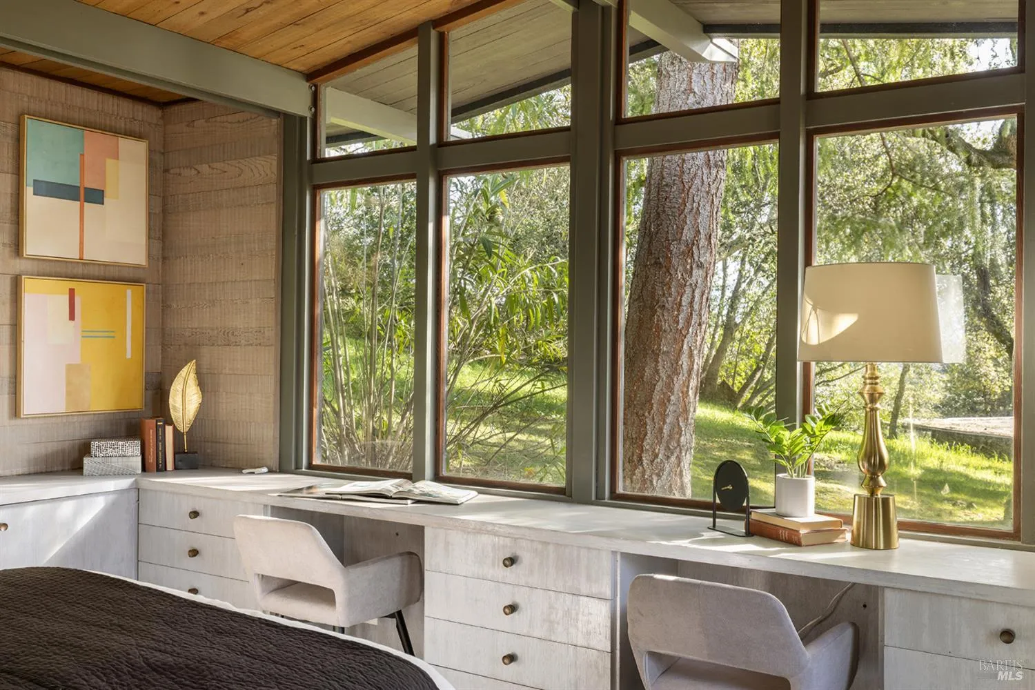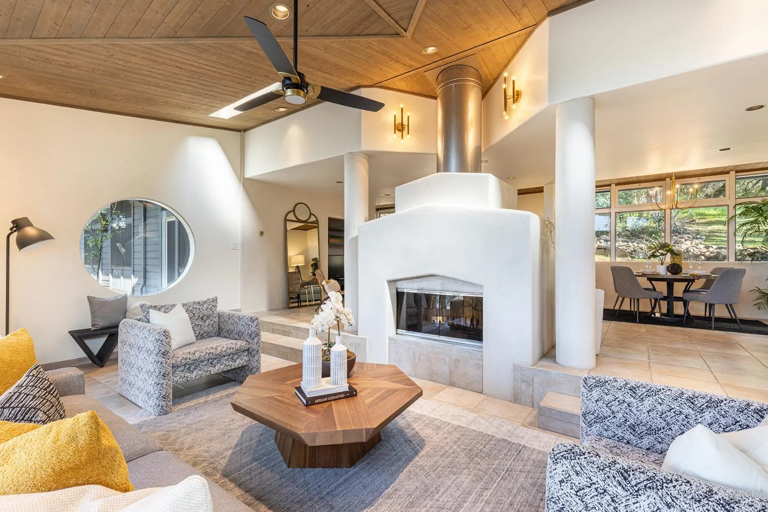 Gracefully oriented on 33 + acres in the heart of the breathtaking Bennett Valley, this mid-century contemporary gem was masterfully designed in the 60’s and has recently undergone a refreshing transformation under the guidance of award-winning architect, Robert Zinkhan. The dramatic living room boasts soaring open beam ceilings, walls of glass that invite the outside in, a cozy fireplace, and elegant French glass doors that open to a picturesque terrace perfect for dining al fresco. The kitchen features state-of-the-art stainless-steel appliances, granite countertops and offers serene views of mature trees and landscaped gardens through its expansive glass walls. The family room is adorned with a whimsical round window, open beam ceiling, a large dual sided fireplace shared with the media room, and expansive sliding doors that beckon you out to enjoy the tranquil setting and pristine swimming pool. This home features four bedrooms, including two expansive primary suites. One of these luxurious primary bedrooms is perched in a separate pavilion, just a few steps from the main home. There’s a stout 2,000 sqft+/- 4 stall horse barn with living quarters above which are quite charming. This secluded property, nestled at the end of a quiet country lane, offers unparalleled privacy! The majestic oak trees and sweeping valley views of distant vineyards and Jess Jackson’s 1,100 acre Jackson park truly awe-inspiring. Other features of the property: caretaker cottage, engineered outdoor arena, separate 3 car garage & separate 3 car carport. There is an additional parcel for those who wish to create a family compound or to sell off a portion.