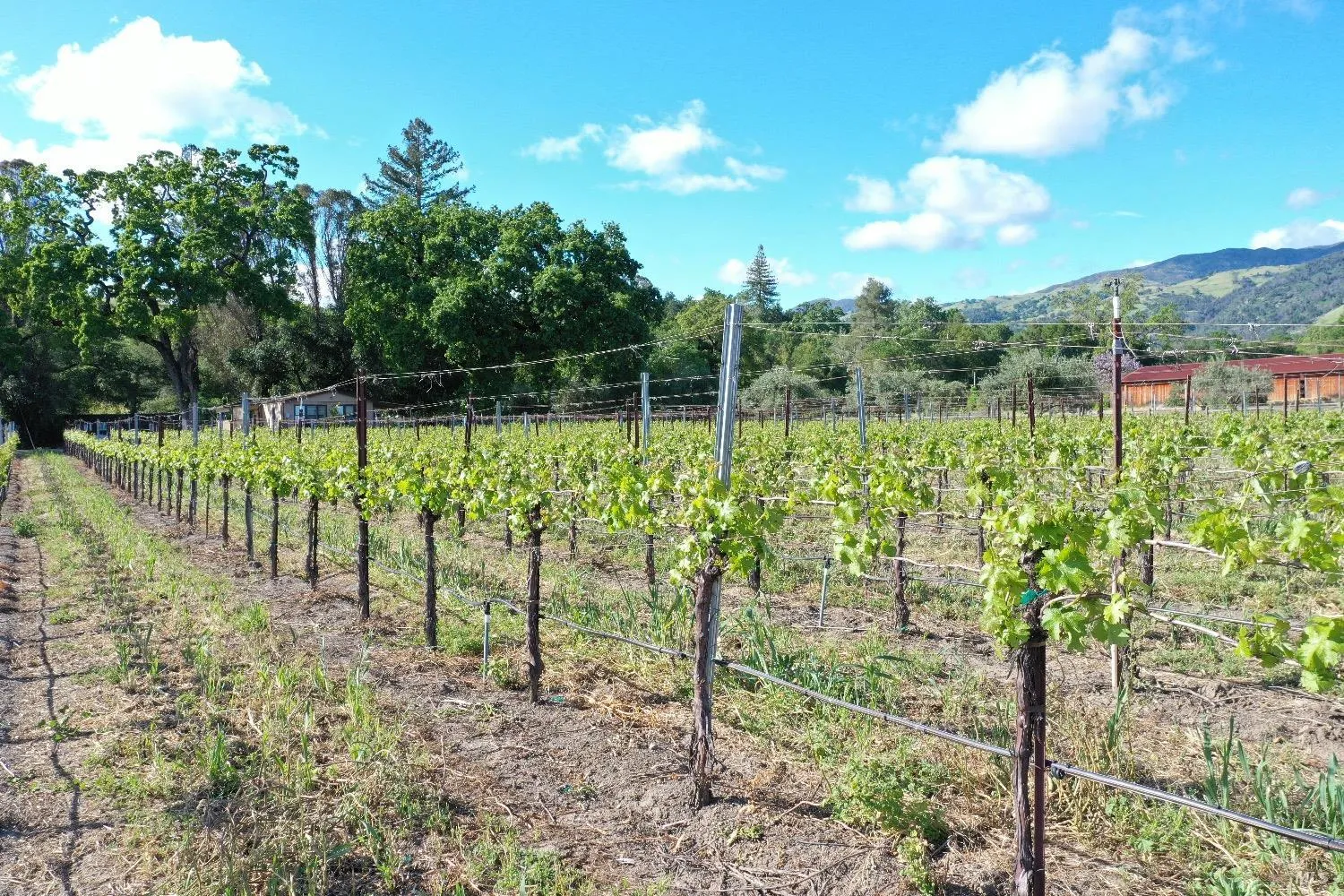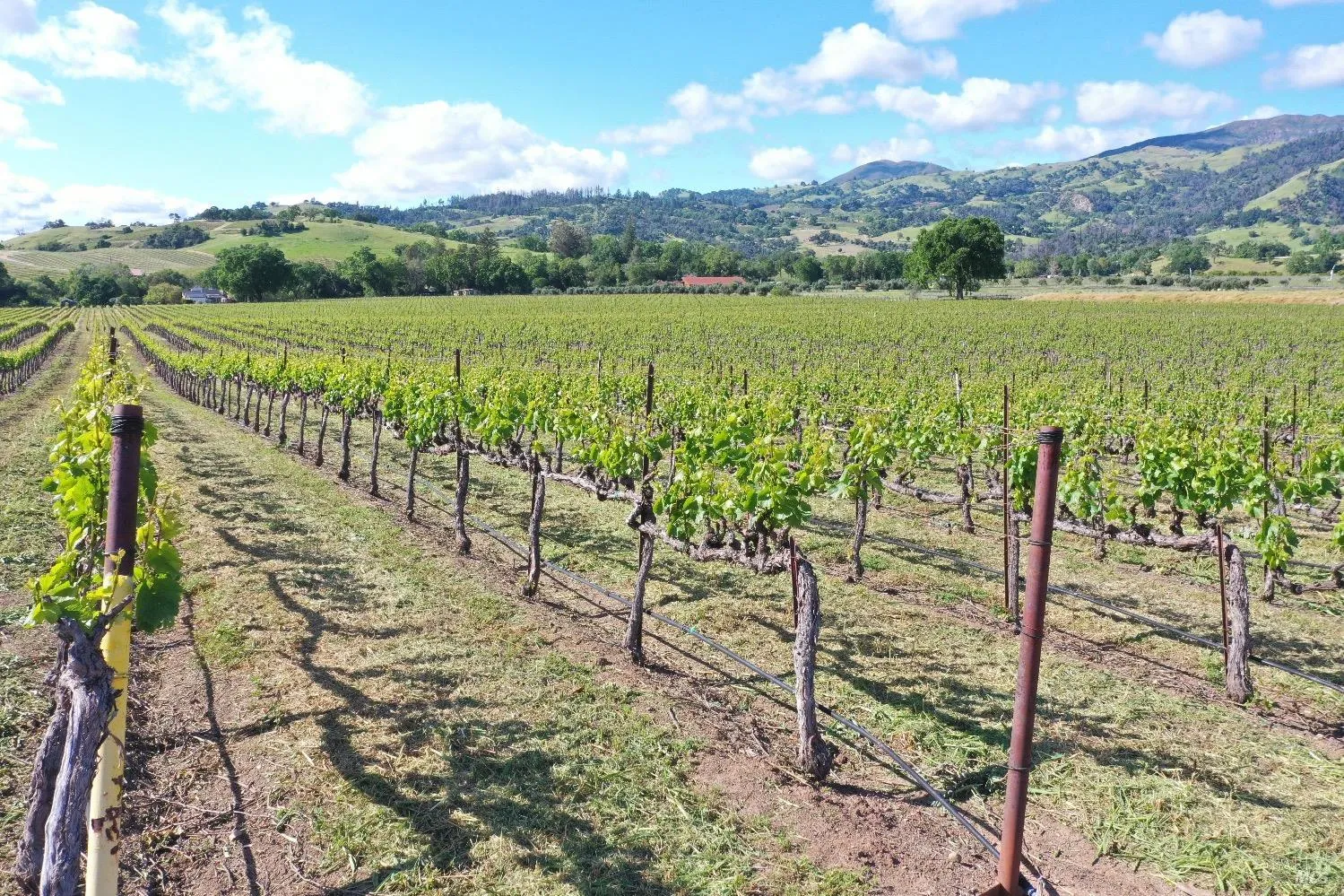 1645 & 1695 Geysers Road, 54 acres +/- Premier Alexander Valley Vineyard and Two Premier Estate View Building Sites. Two parcels 28.27 & 26.52 +/- acres. 47.29 acres premium planted vineyards, 2 acres +/- new Cabernet Sauvignon vineyard planted 2018, 12.50 acres new Chardonnay vineyard planted in 2020 and 32.72 +/- acres Chardonnay vineyard. Large Reservoir, meandering creek, Accessed by private entrance and bridge. Agriculture Water Well 500 GPM’s +/- and residential water well. Large Valley Oaks and Redwood trees. Sunrise and Sunset Views. Alexander Valley Wine Appellation. Minutes to Jimtown and Healdsburg.